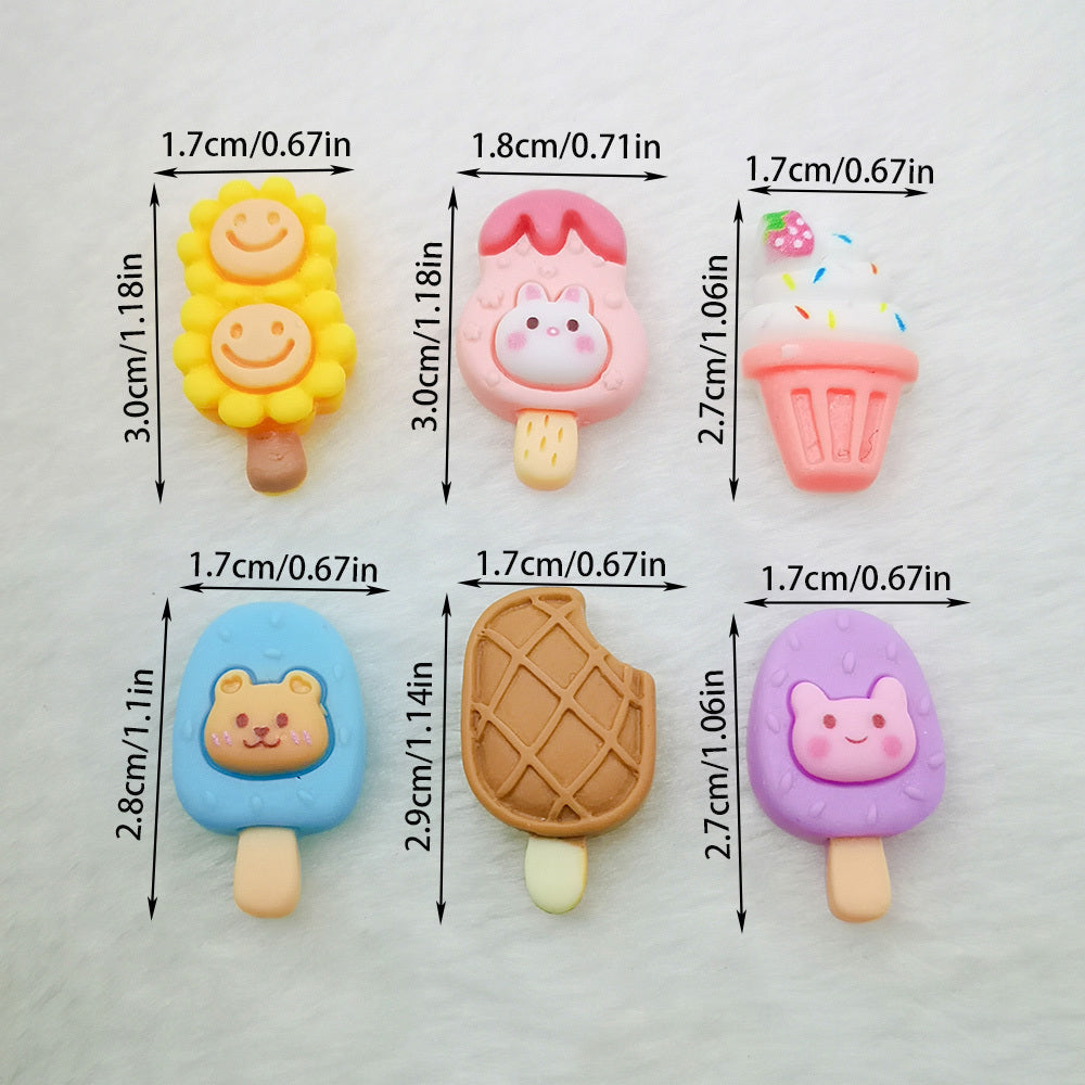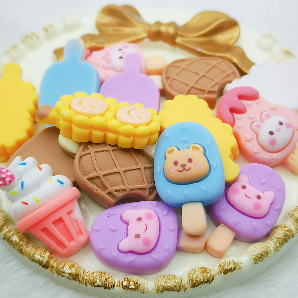 These 10pcs mixed resin cabochons are perfect for scrapbooking, DIY jewelry making, and craft decorations. They feature mini cake, ice cream, and popsicle designs.