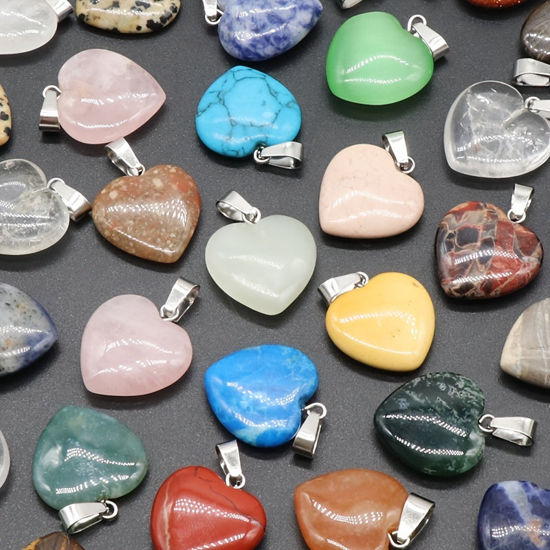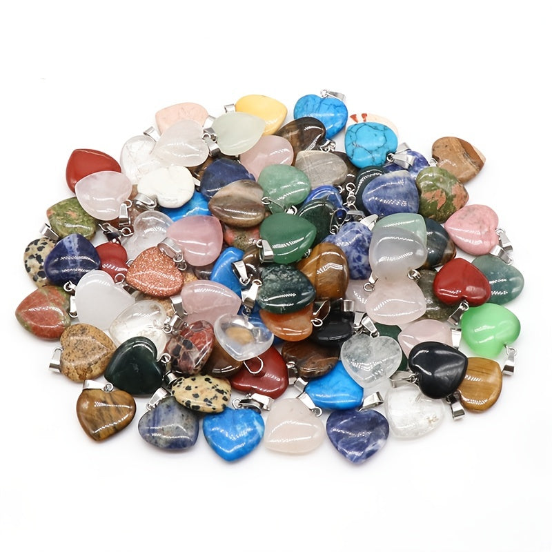 Enhance your jewelry making projects with these 10pcs of natural crystal agate love heart pendants. Each pendant is 20mm in size, perfect for necklaces, bracelets, and other DIY crafts.