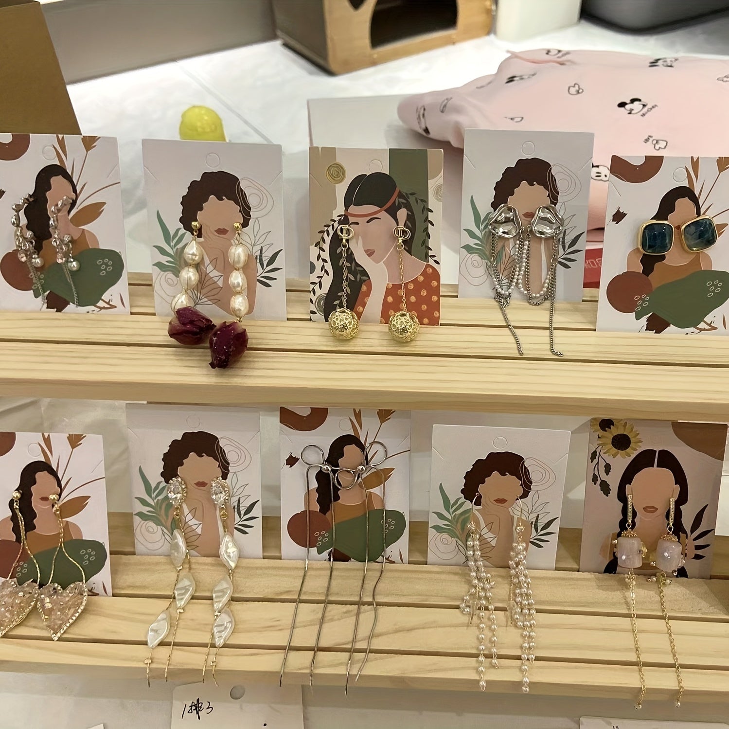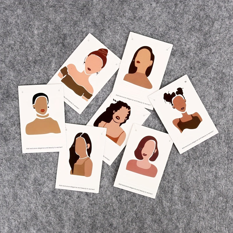 These elegant paper face girl ear accessories display cards are perfect for showcasing your jewelry. The long design adds a stylish touch to your presentation.