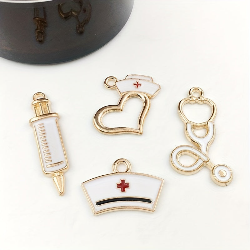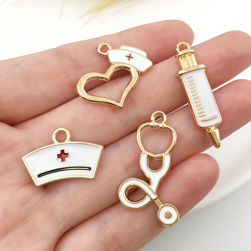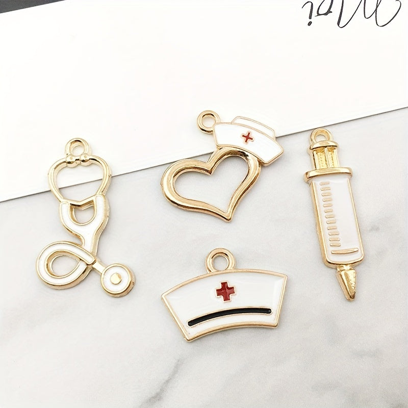 Add a medical touch to your DIY creations with these alloy pendants featuring a syringe, stethoscope, and nurse hat design. Perfect for bracelets, necklaces, earrings, or key chains.