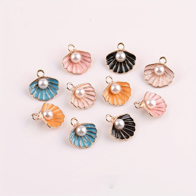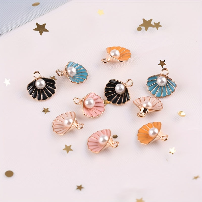 Enhance your jewelry-making with these 10pcs pearl shell alloy drip oil pendants. Perfect for necklaces, bracelets, and other accessories.