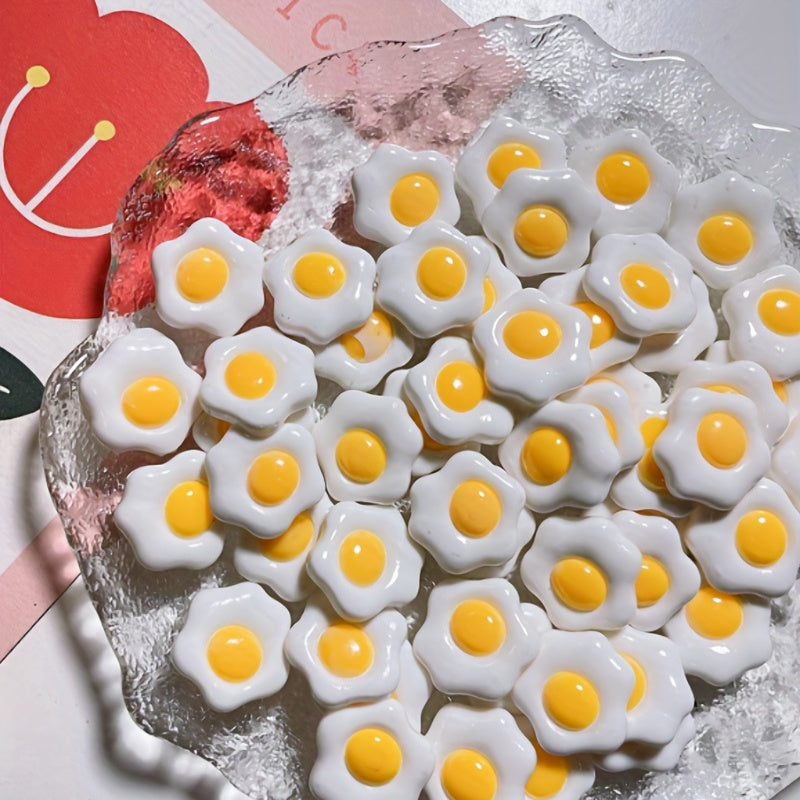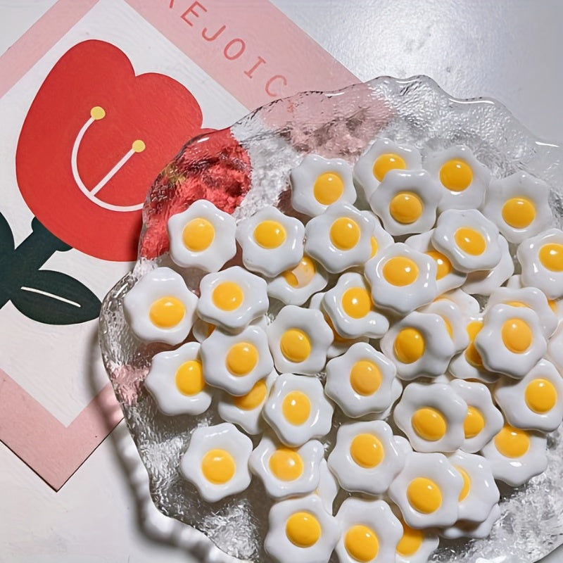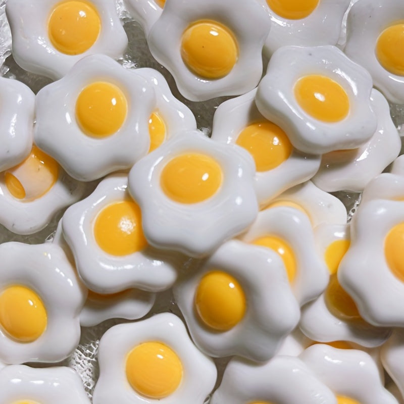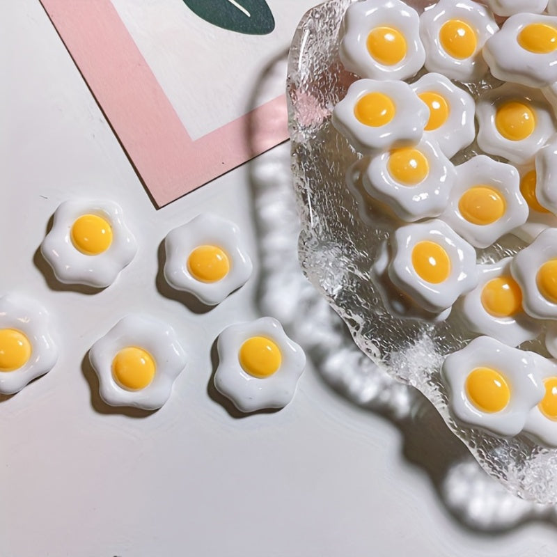 Add a cute touch to your hair accessories, phone case, or other crafts with these poached egg resin charms. Each set includes 10 pieces for endless creative possibilities.