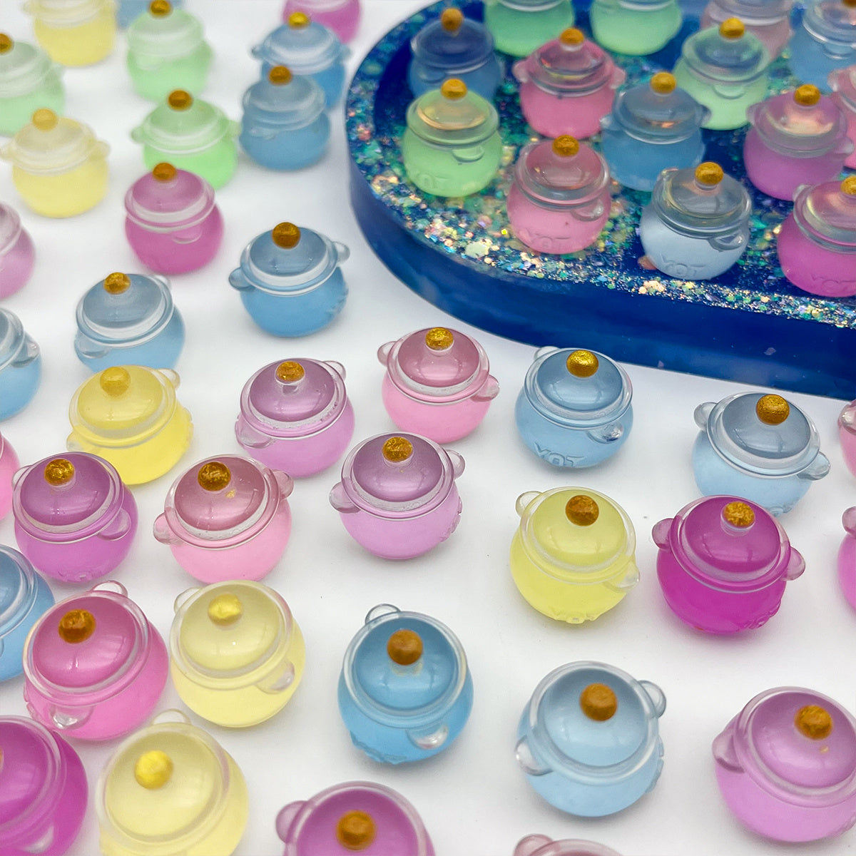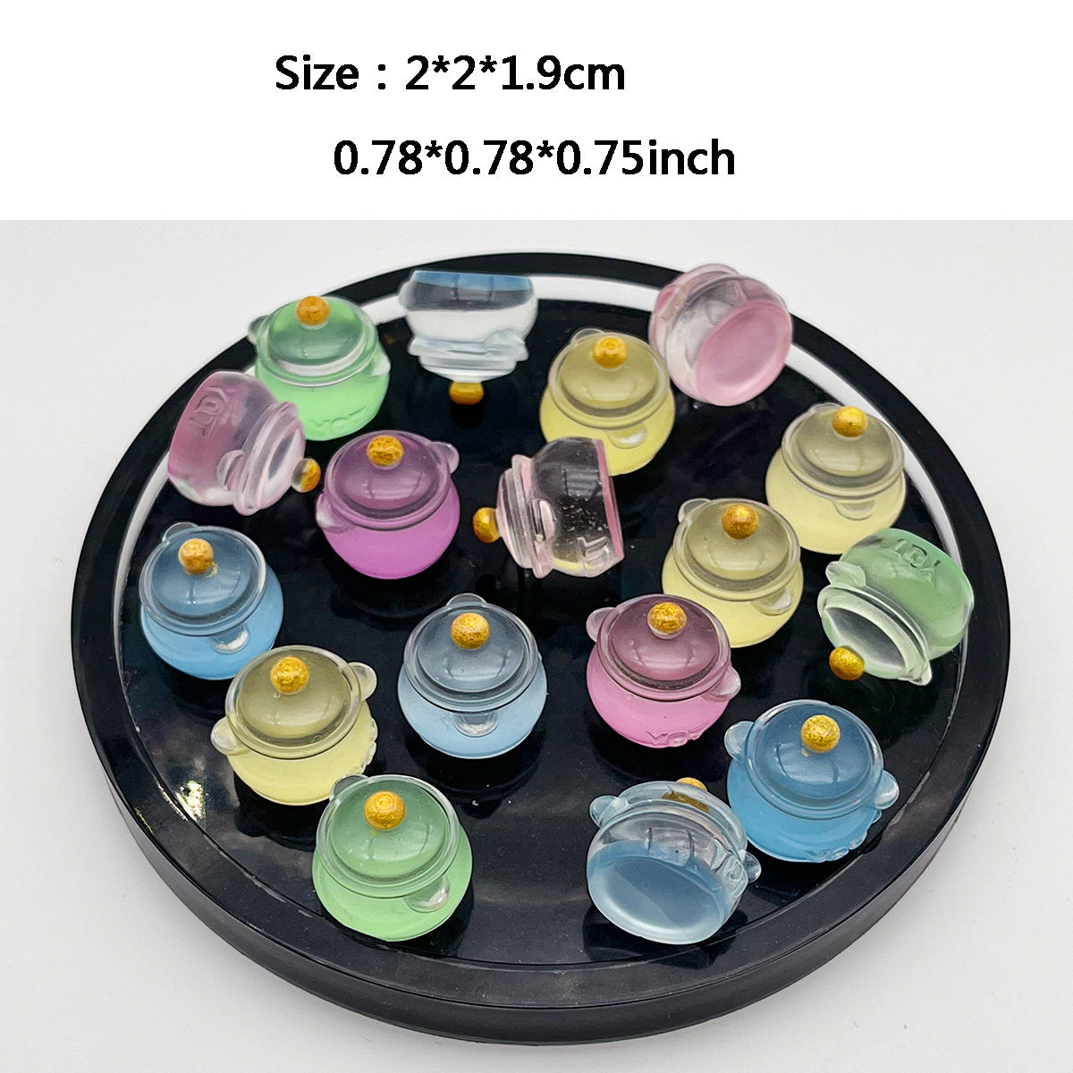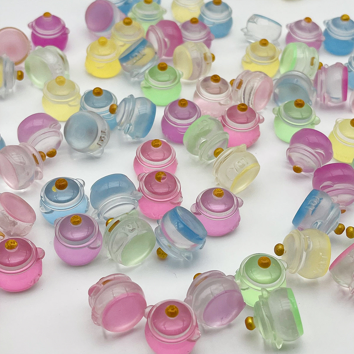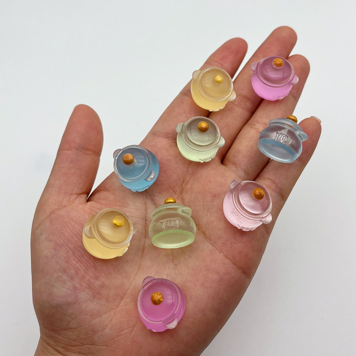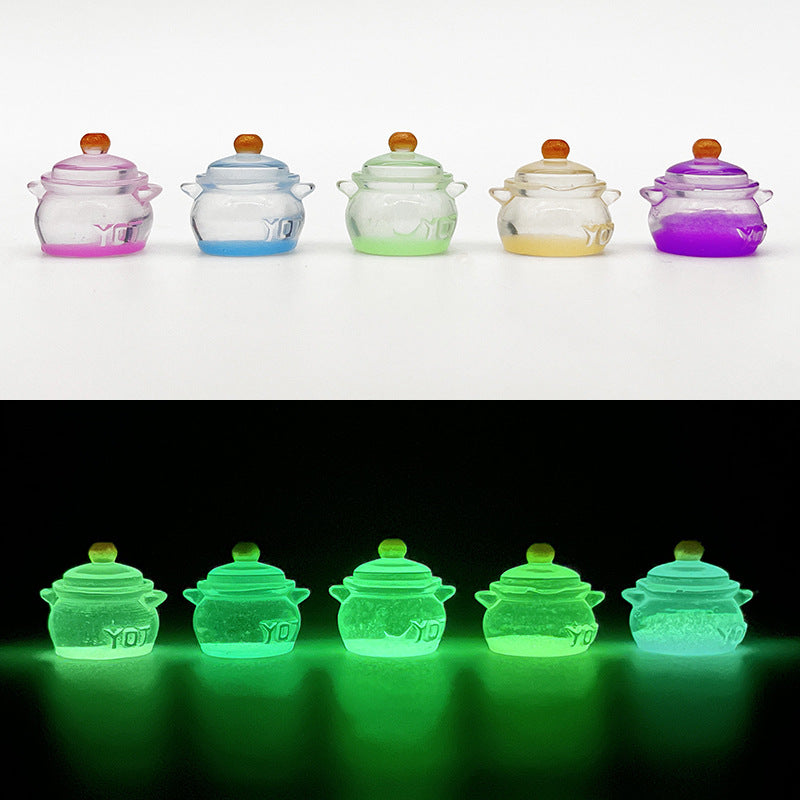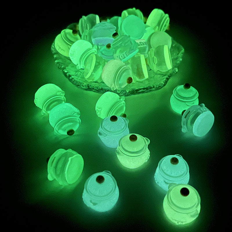 These mini pot toys are made of resin and feature a glow-in-the-dark design. Perfect for jewelry making, charms, pendants, and art decorations. Add a touch of luminous charm to your DIY projects.
