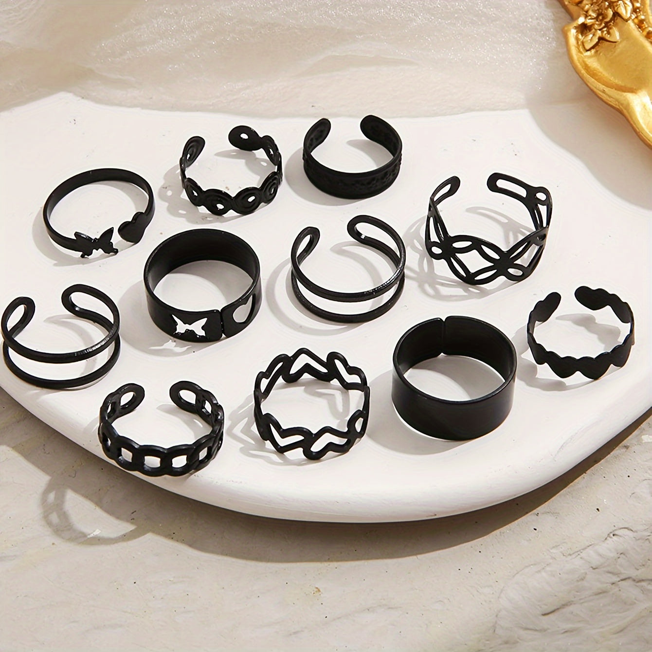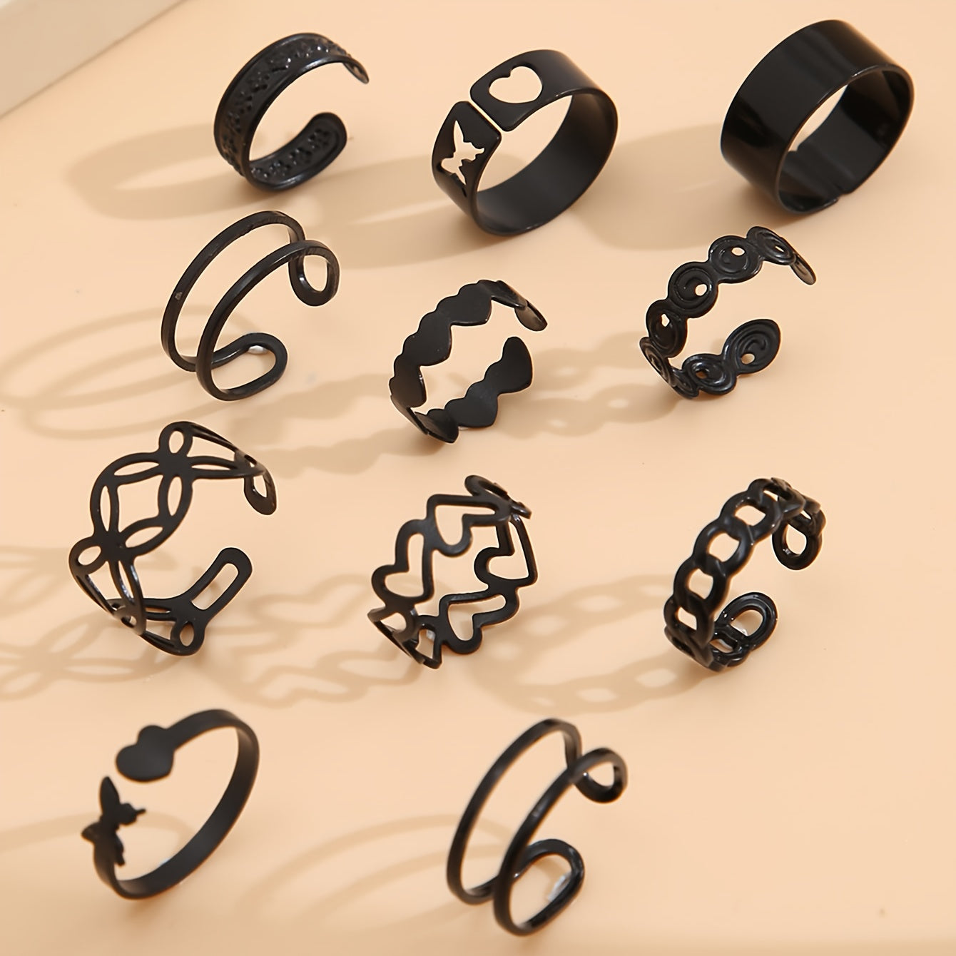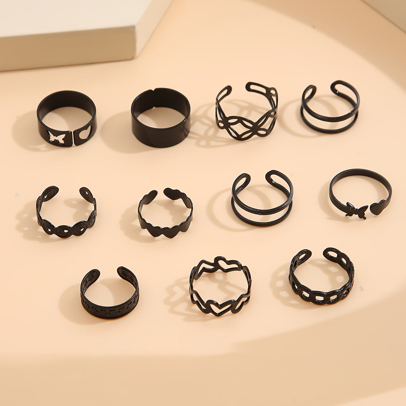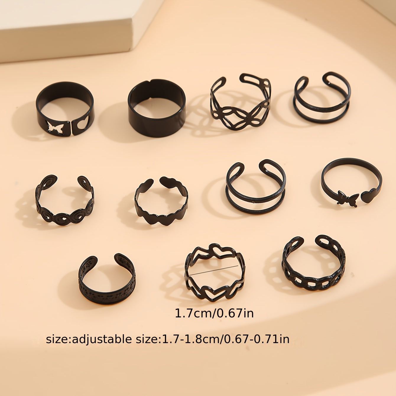 Elegant vintage gothic ring set with 11pcs rings featuring heart, butterfly, and geometric designs. Perfect for Christmas, Halloween, Mother's Day, or any occasion.