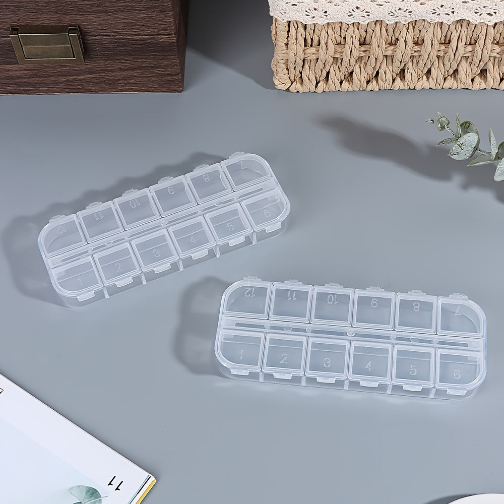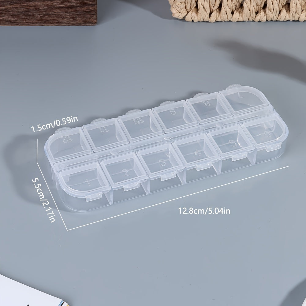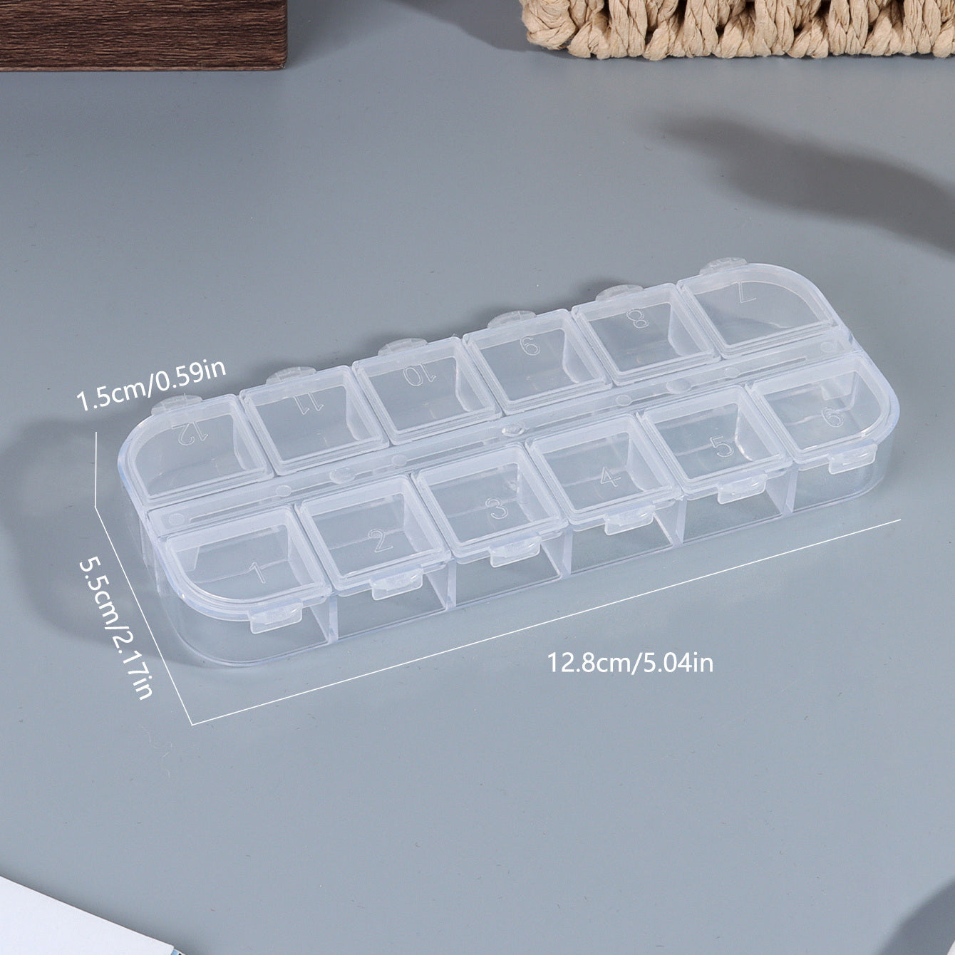 Keep small accessories organized with this clear storage box featuring 12 grids. Ideal for storing ear studs, rhinestones, and other small items.