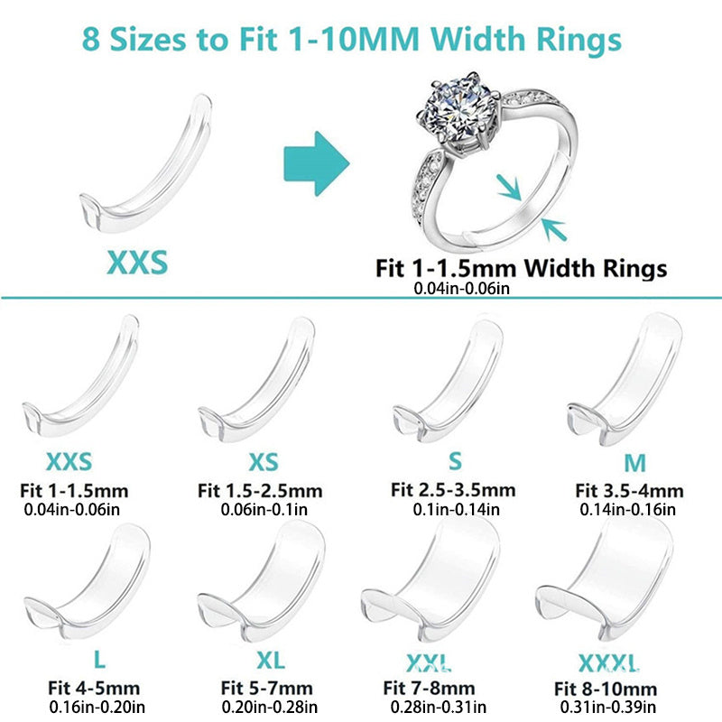 This pack of 12 transparent invisible ring size adjusters is perfect for tightening loose rings. Made of plastic, these adjusters fit any type of ring seamlessly.