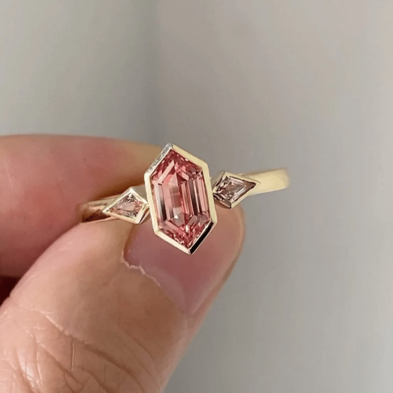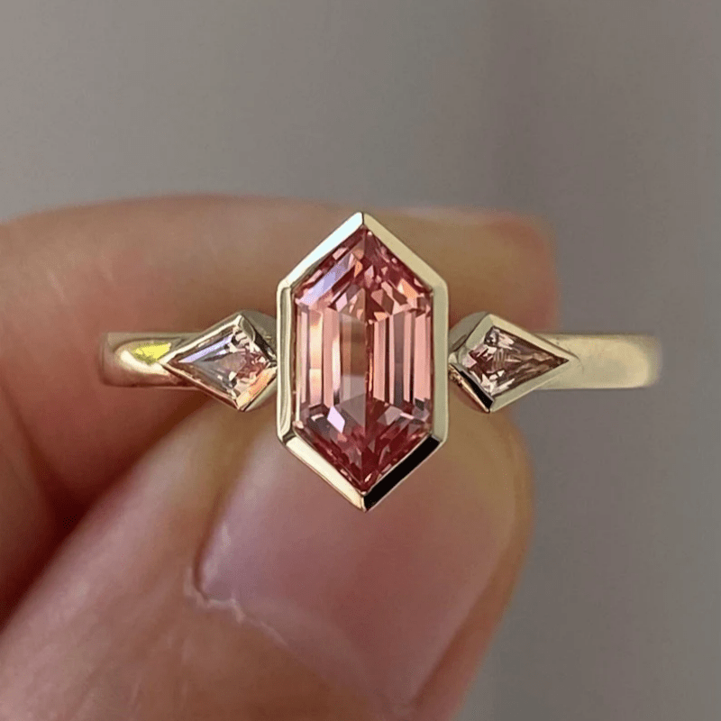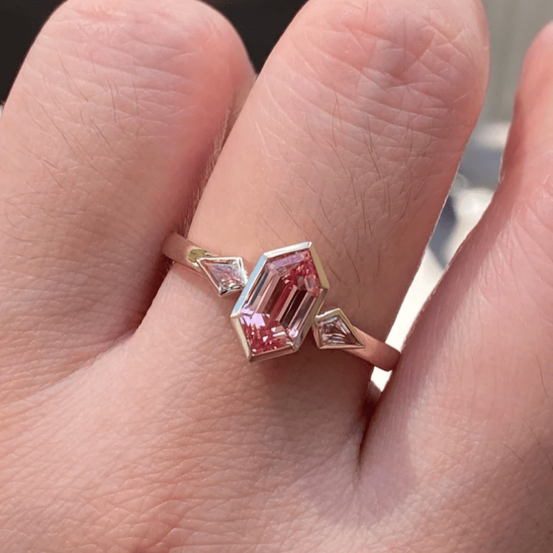 Elegant wedding band featuring synthetic zirconia in a rhombus design. Perfect December birthstone jewelry for anniversary or Valentine's gift.