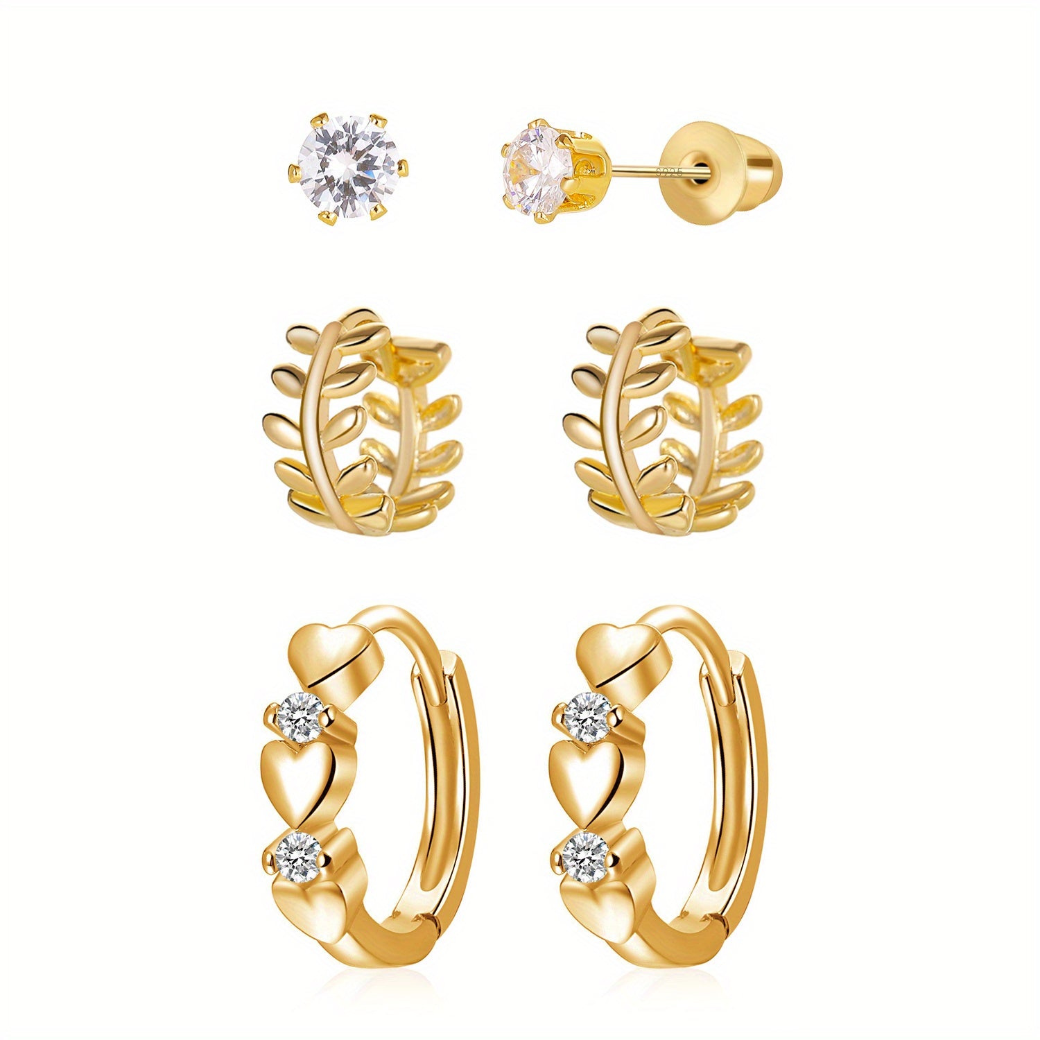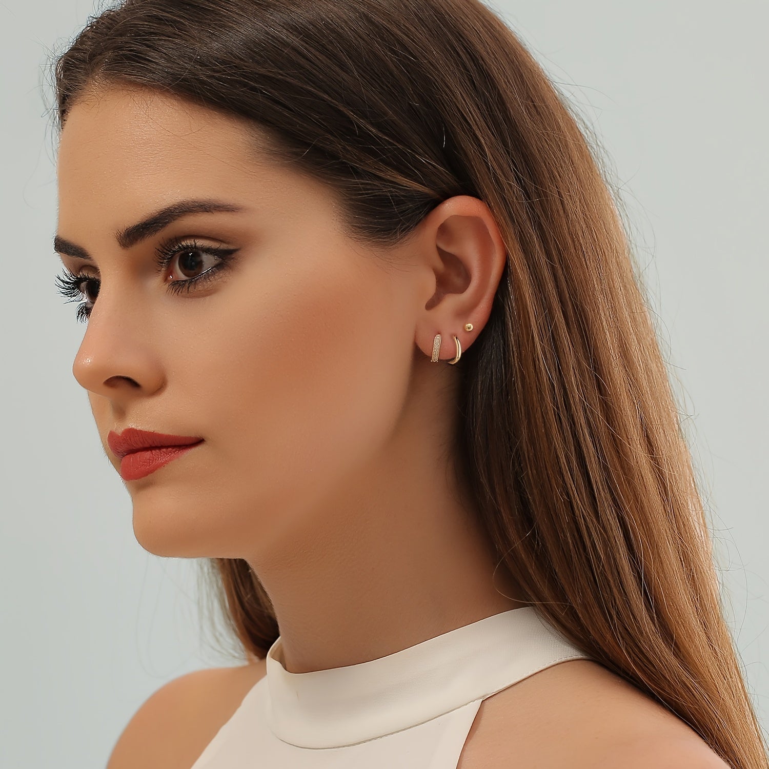 • Includes ball stud, small huggie hoop, and 14K plated designs