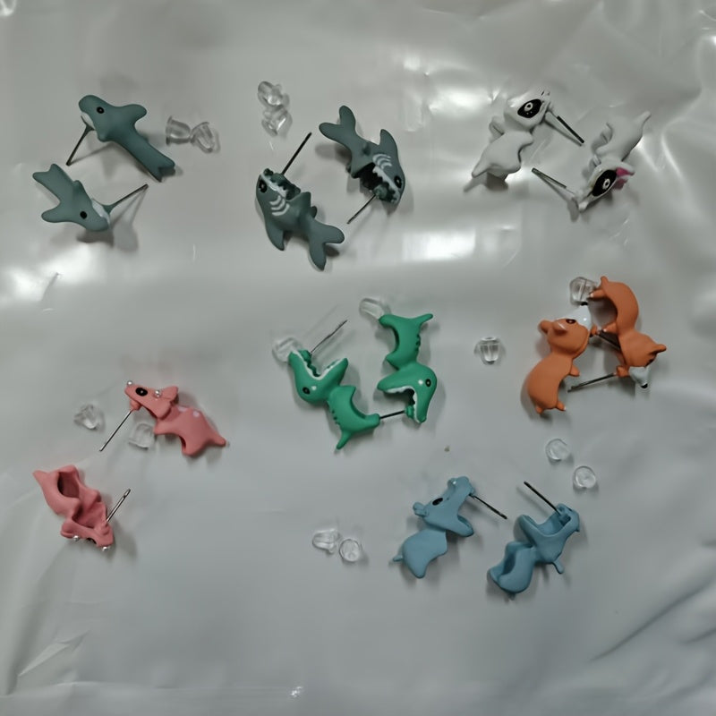 These fun earrings feature cute dinosaur, puppy, and whale patterns, perfect for adding a playful touch to your outfit. Made of clay, these unique accessories are lightweight and comfortable to wear.