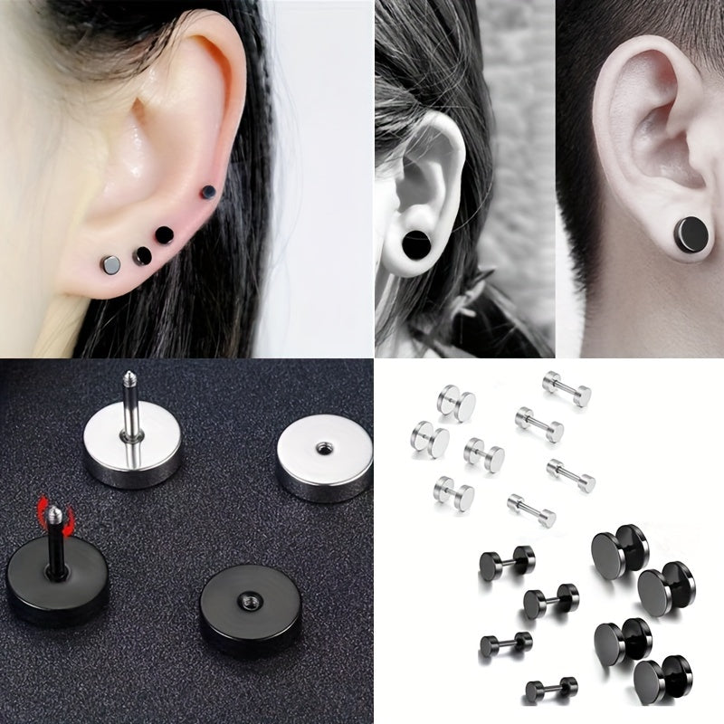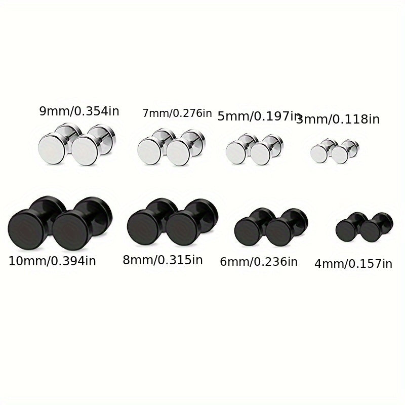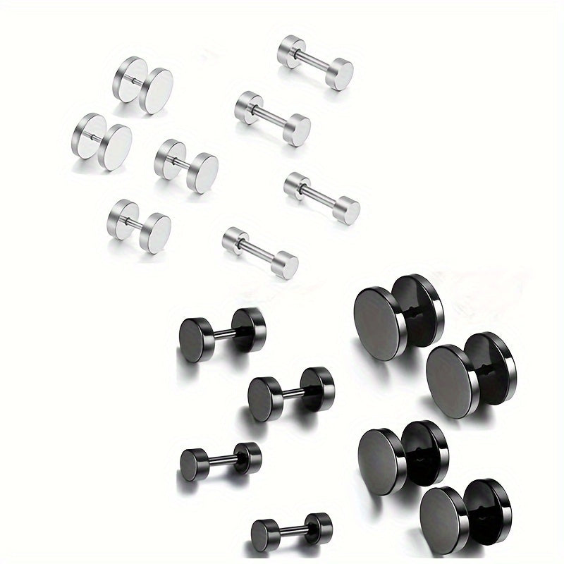 16pcs Men's Barbell Earring Set Stainless Steel Flat Back Studs Gun Plated