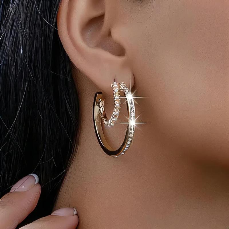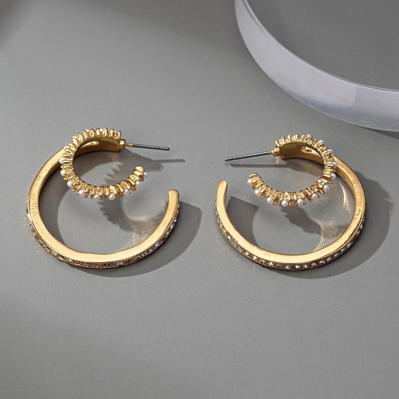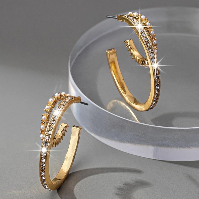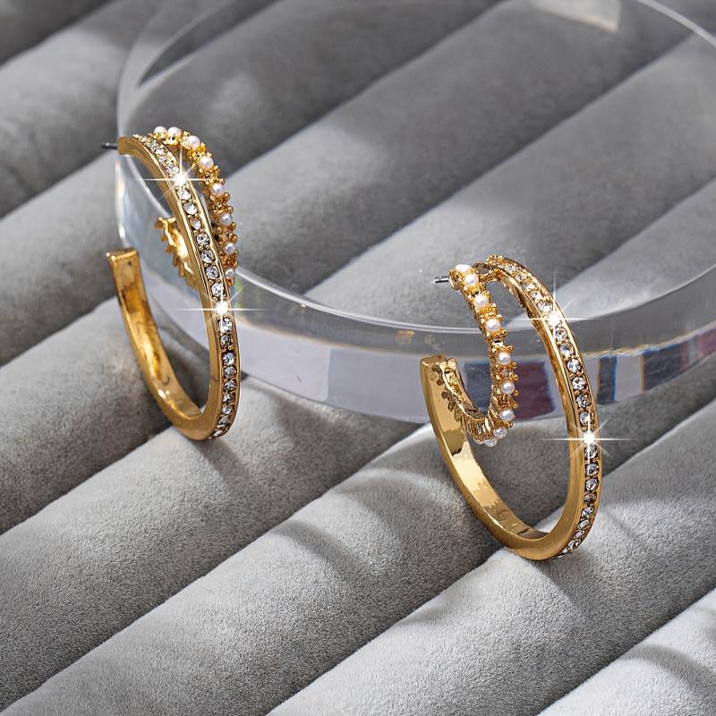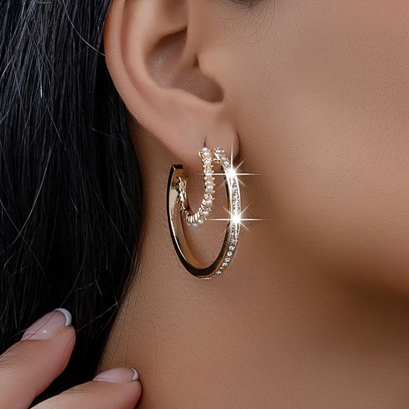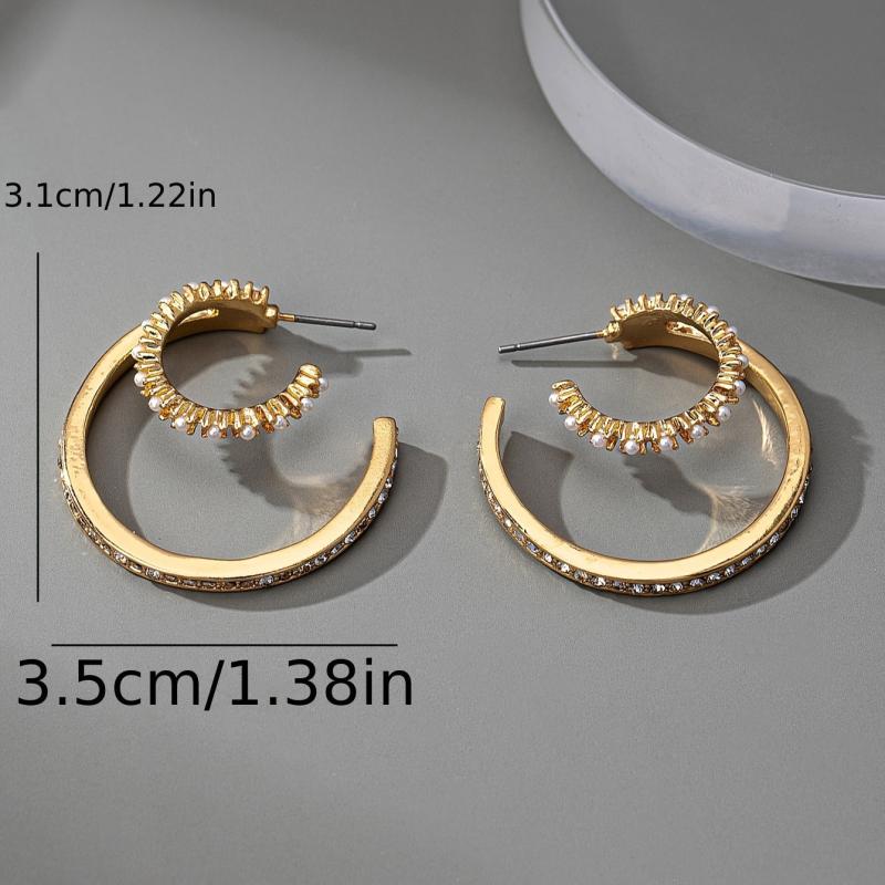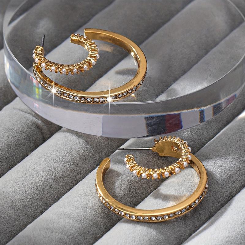 These stunning hoop earrings are crafted from high-quality zinc alloy with 18K gold plating, adorned with sparkling rhinestones and elegant pearl accents. Perfect for everyday wear, parties, and special occasions.