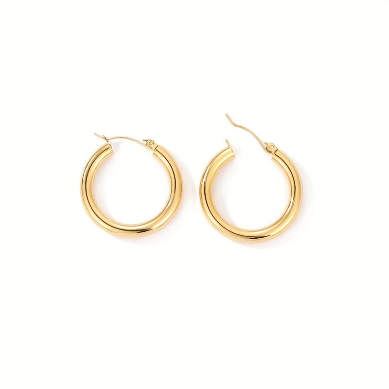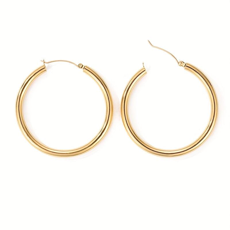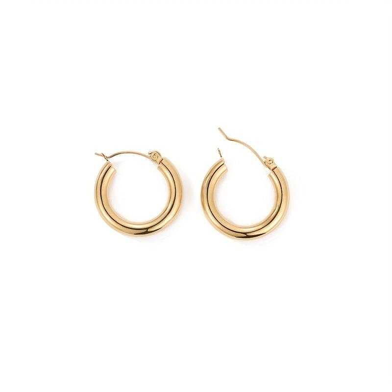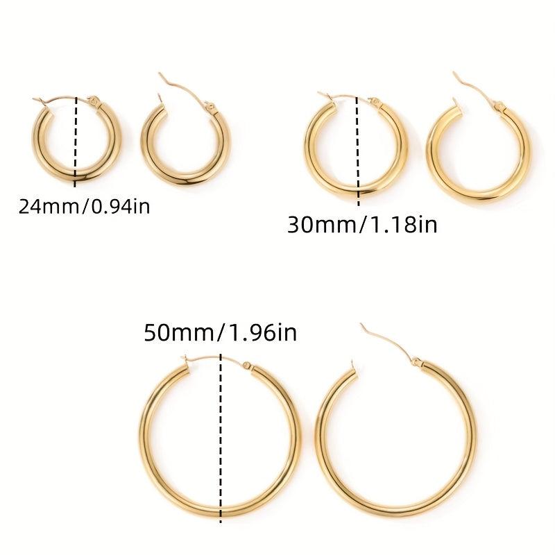 Add a touch of elegance to your look with these minimalist hoop earrings. Made of high-quality stainless steel with 18K gold plating, they are lightweight and comfortable to wear.