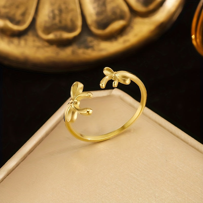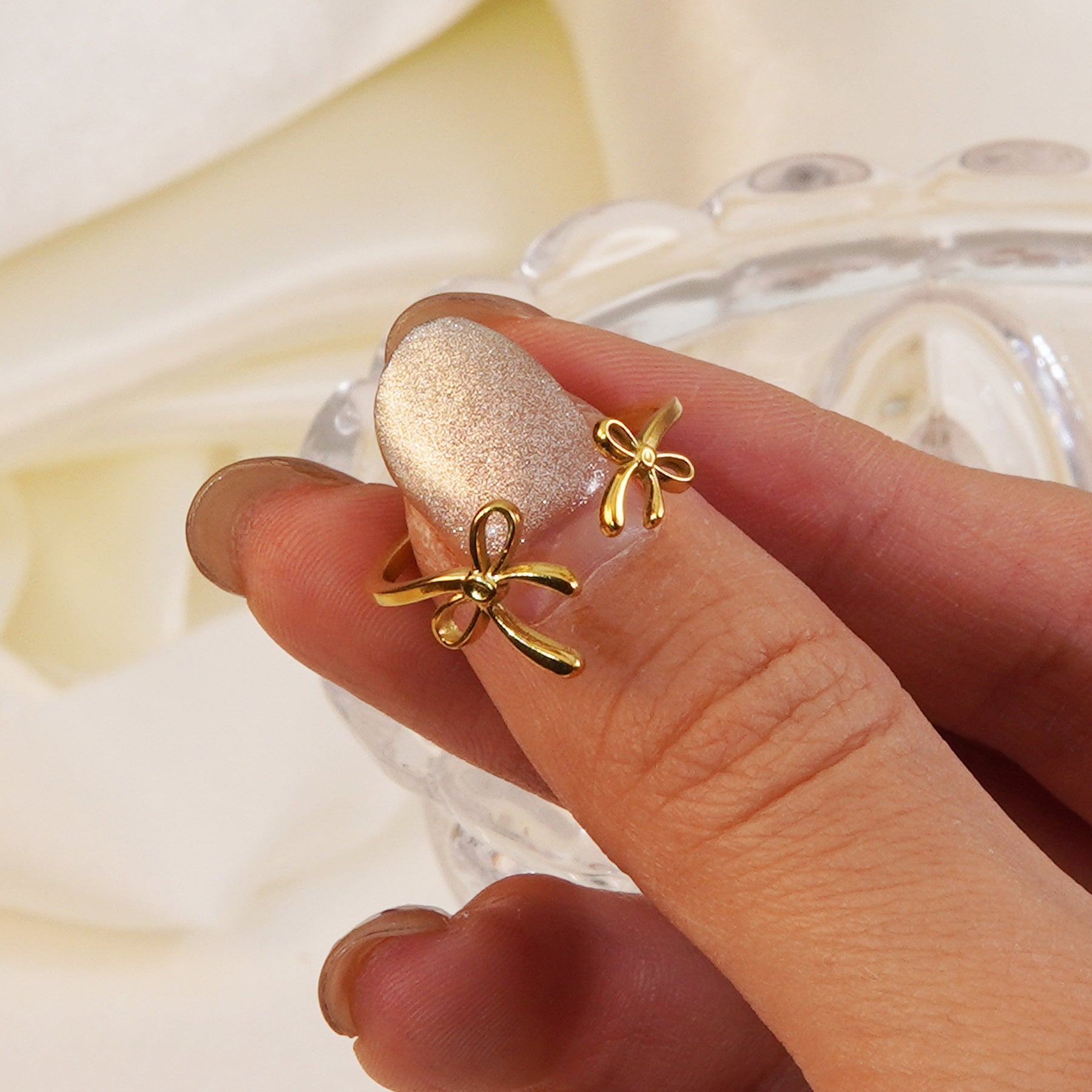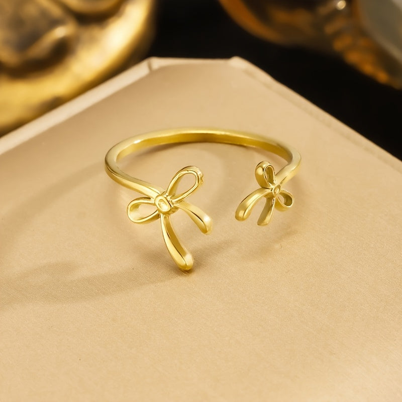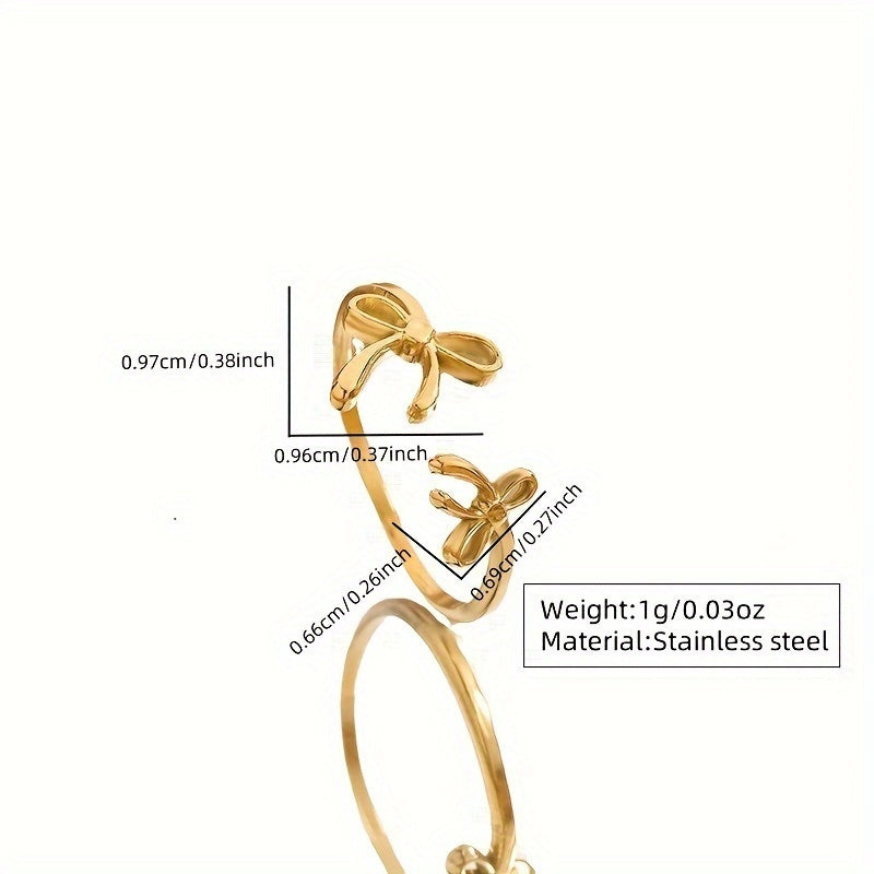 Elegant ring featuring a hollow bowknot design, made of 18K gold plated stainless steel. Perfect for everyday wear or special occasions. Makes a great Valentine's gift.