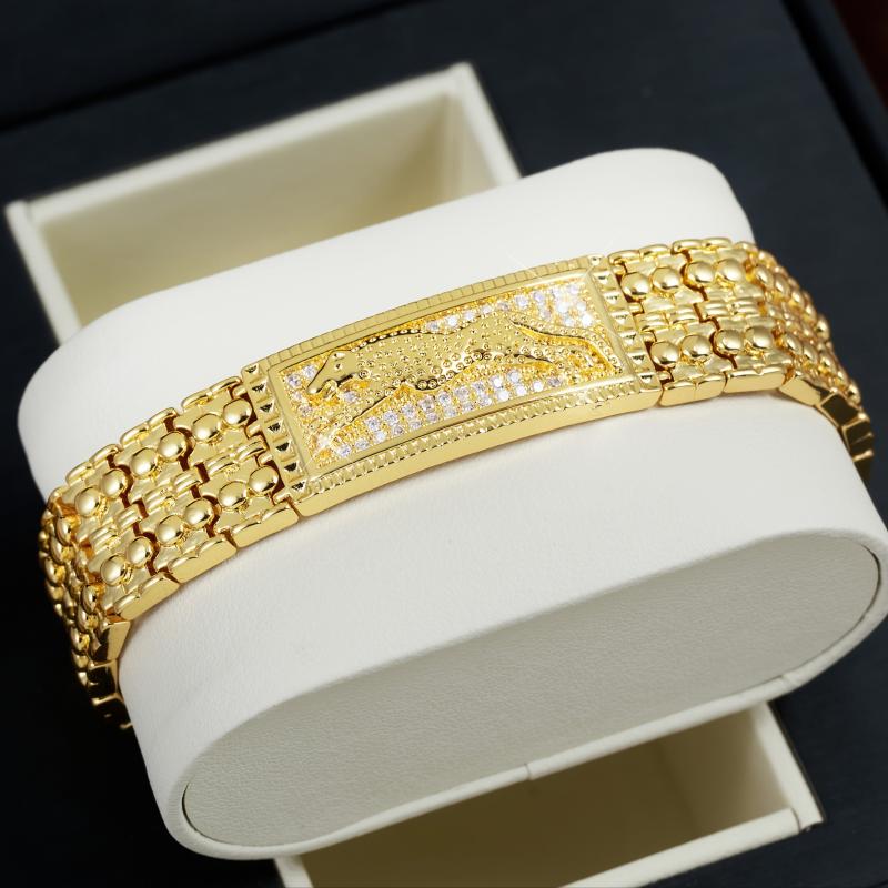 Elevate your style with this polished bracelet featuring a lion head design and sparkling zirconia stones. Perfect for both men and women, this unisex jewelry piece is ideal for casual attire or as a thoughtful gift.