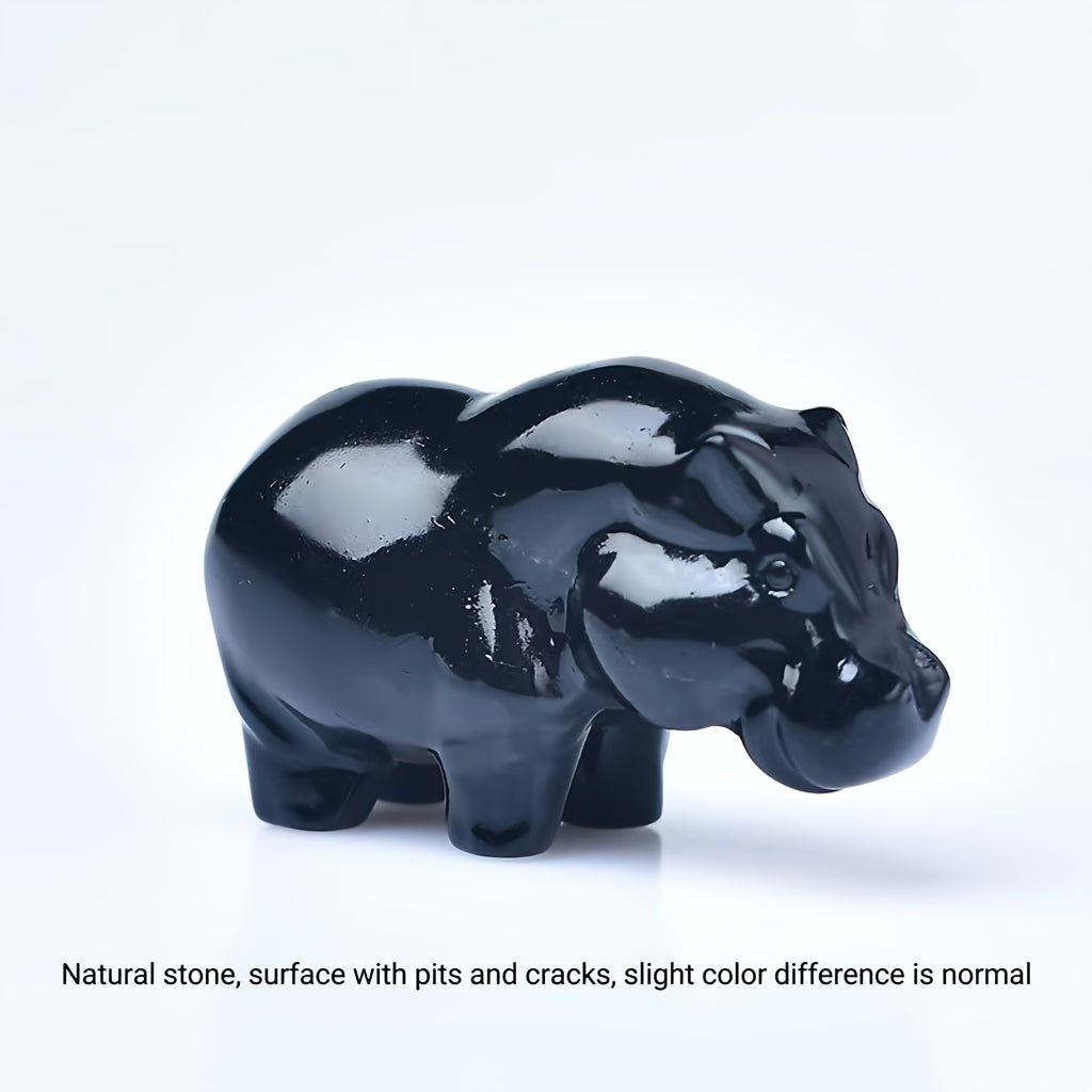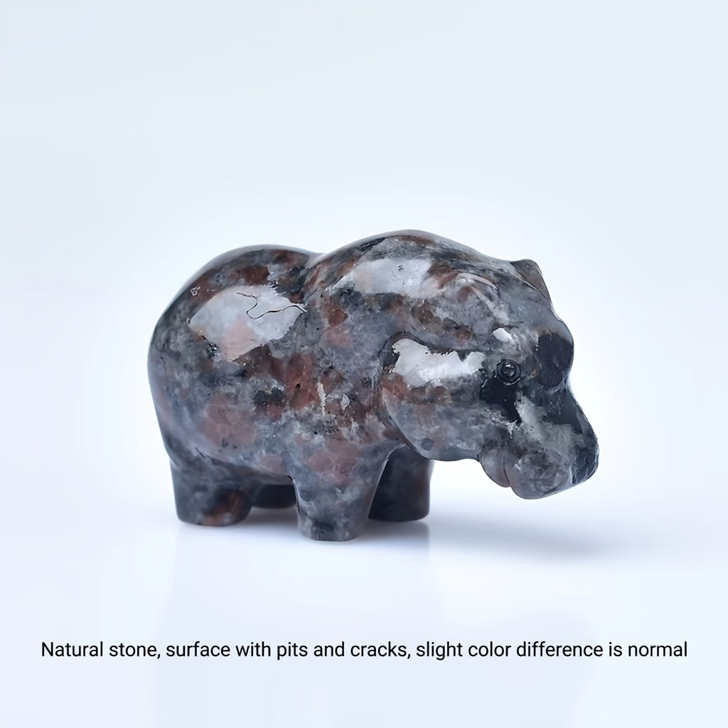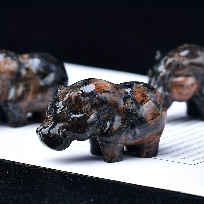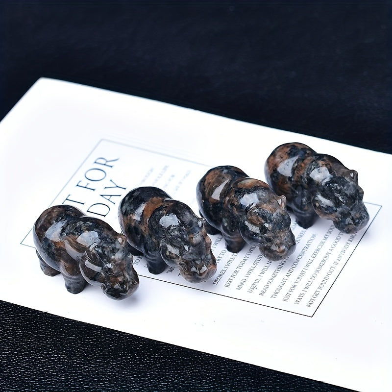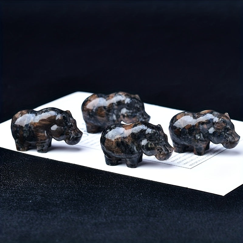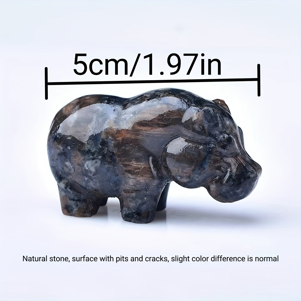 This 1.97-inch crystal carved hippo pocket gift is a unique animal statue made from moonstone. It serves as a healing stone.