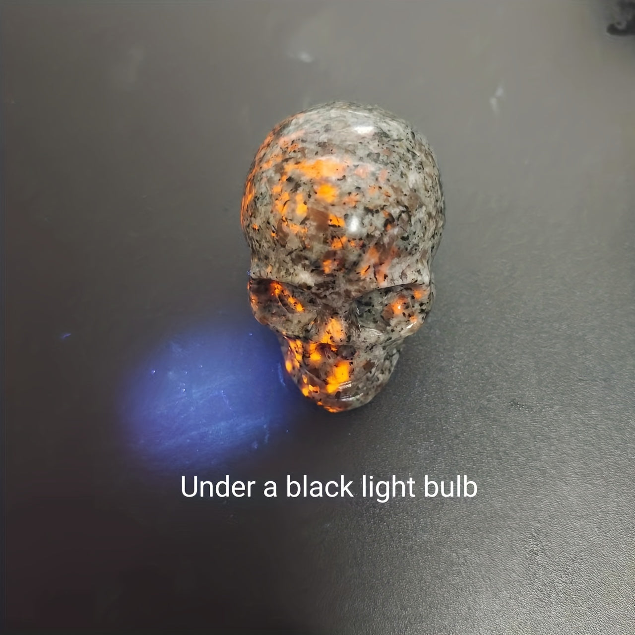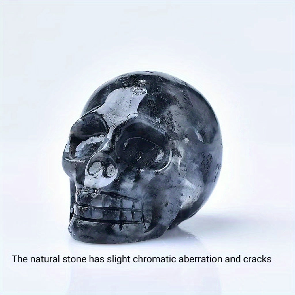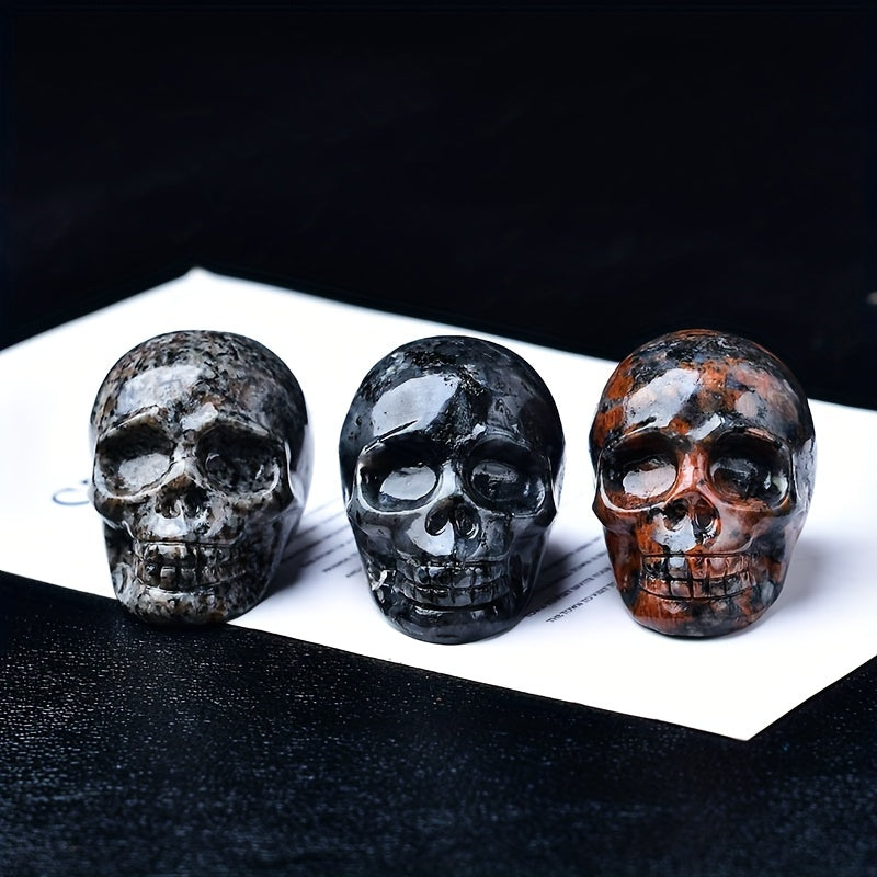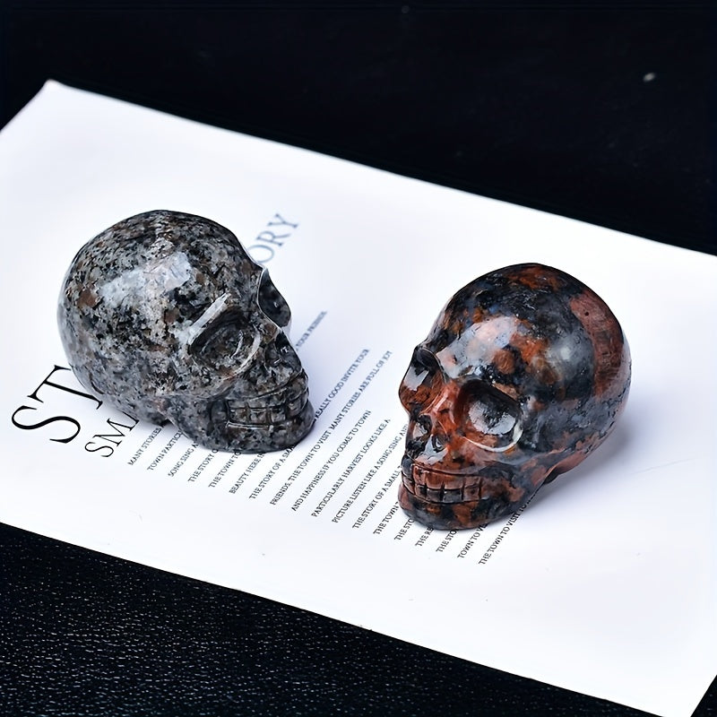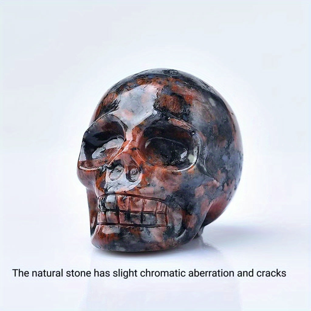 Add a touch of natural beauty to your home with this large skull carving crystal made from flame stone. Perfect for Halloween or as a mineral specimen display.