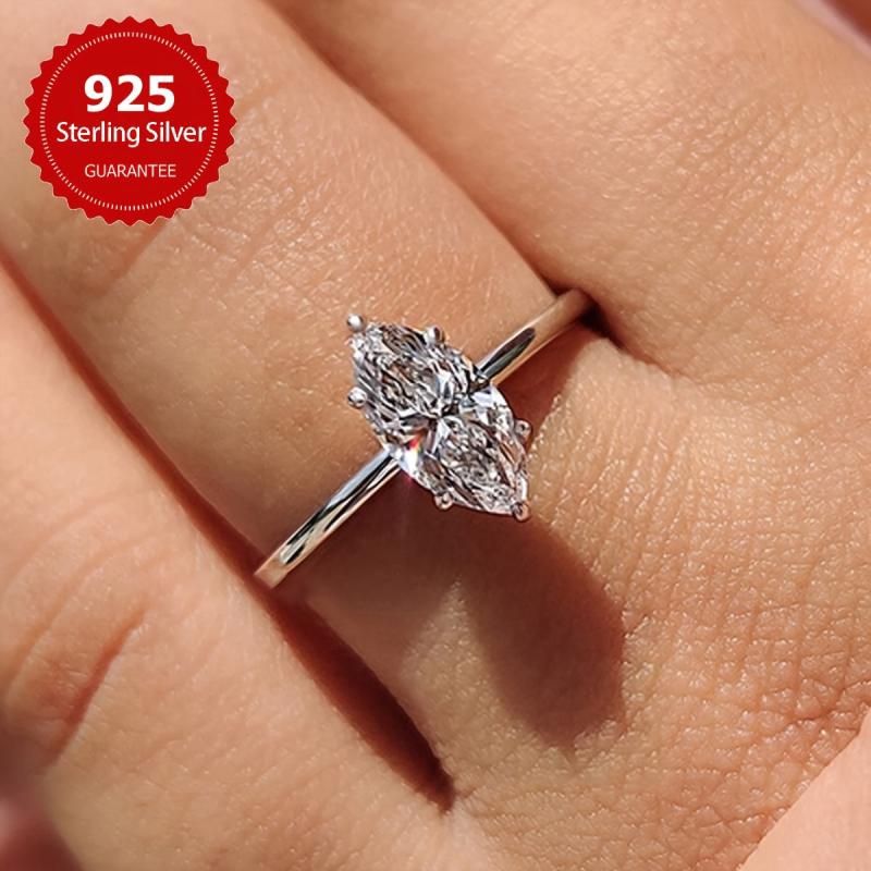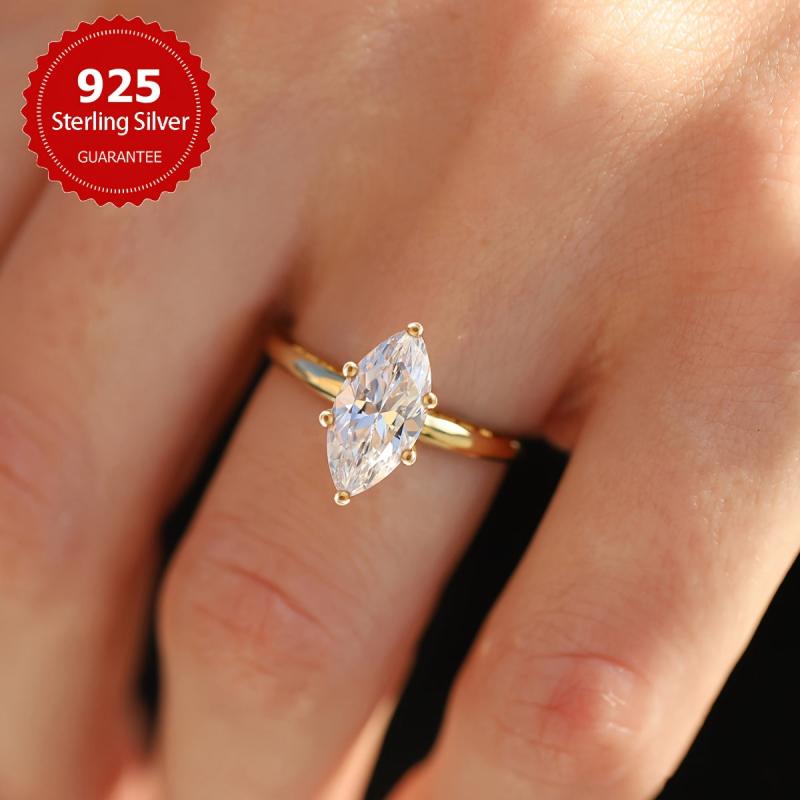 Stunning 1ct marquise moissanite engagement ring crafted in 925 sterling silver with a 6 prong setting. The perfect gift for brides and ring enthusiasts.