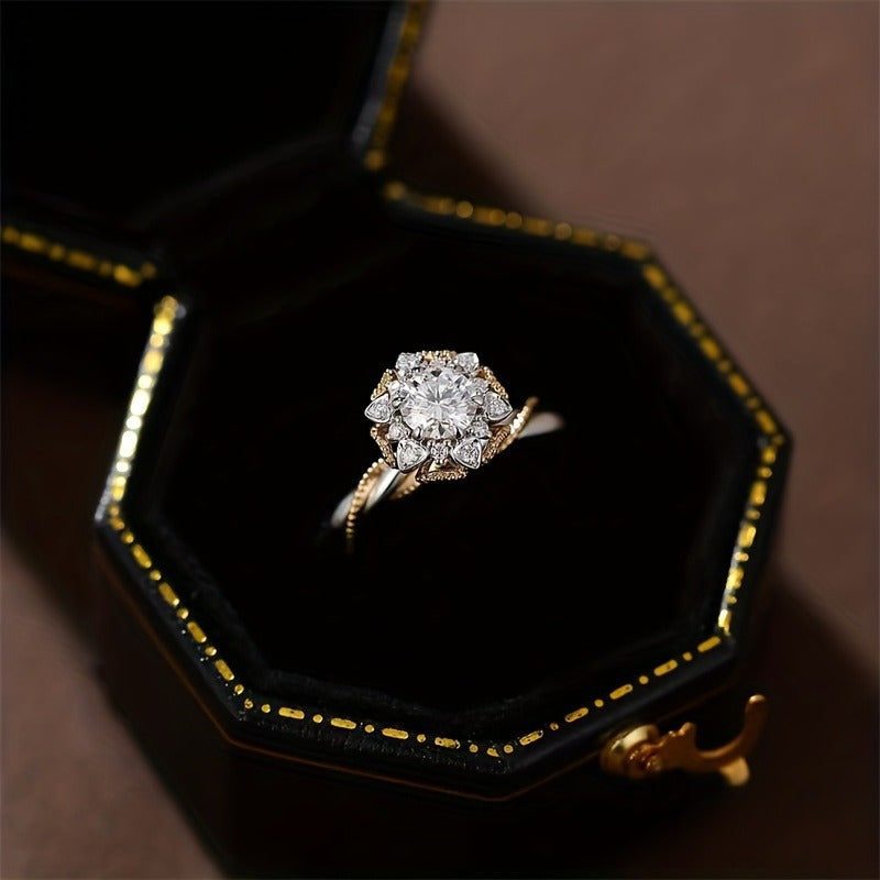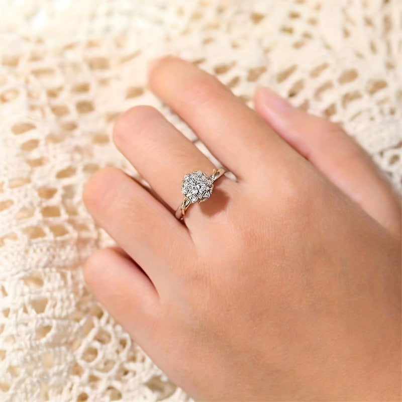 This stunning 1ct Moissanite Flower Ring crafted in S925 Sterling Silver is a perfect gift for birthdays, anniversaries, or any special occasion.
