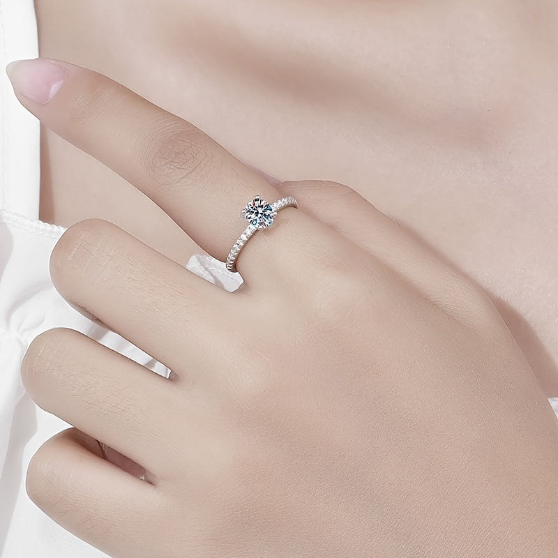 Elegant and stunning oval Moissanite engagement ring crafted in S925 sterling silver. This European and American style ring is perfect for brides looking for a unique and timeless piece of jewelry.