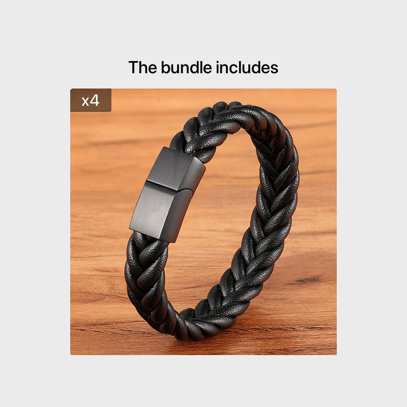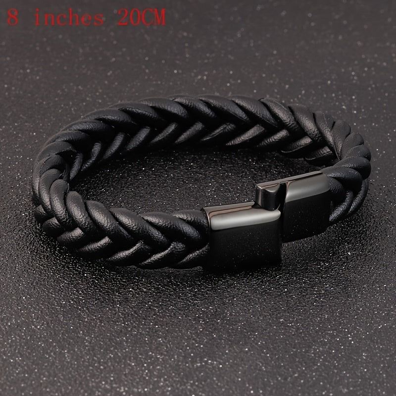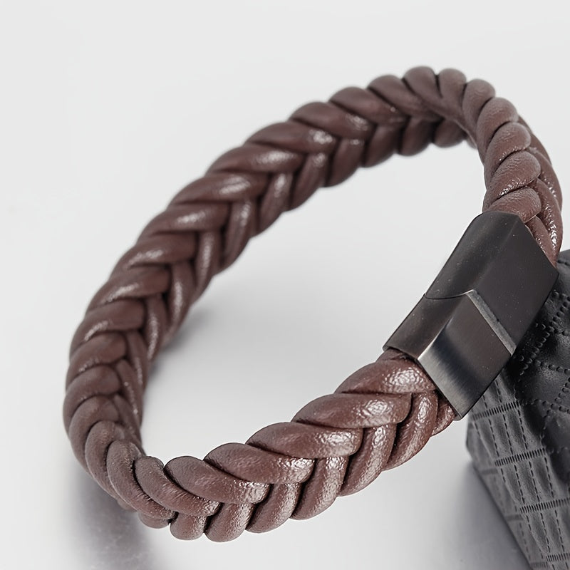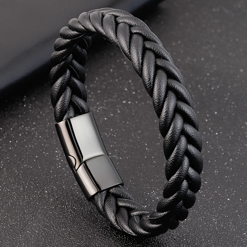 This stylish leather bracelet features a braided design and a magnetic buckle closure, perfect for couples and DIY enthusiasts.