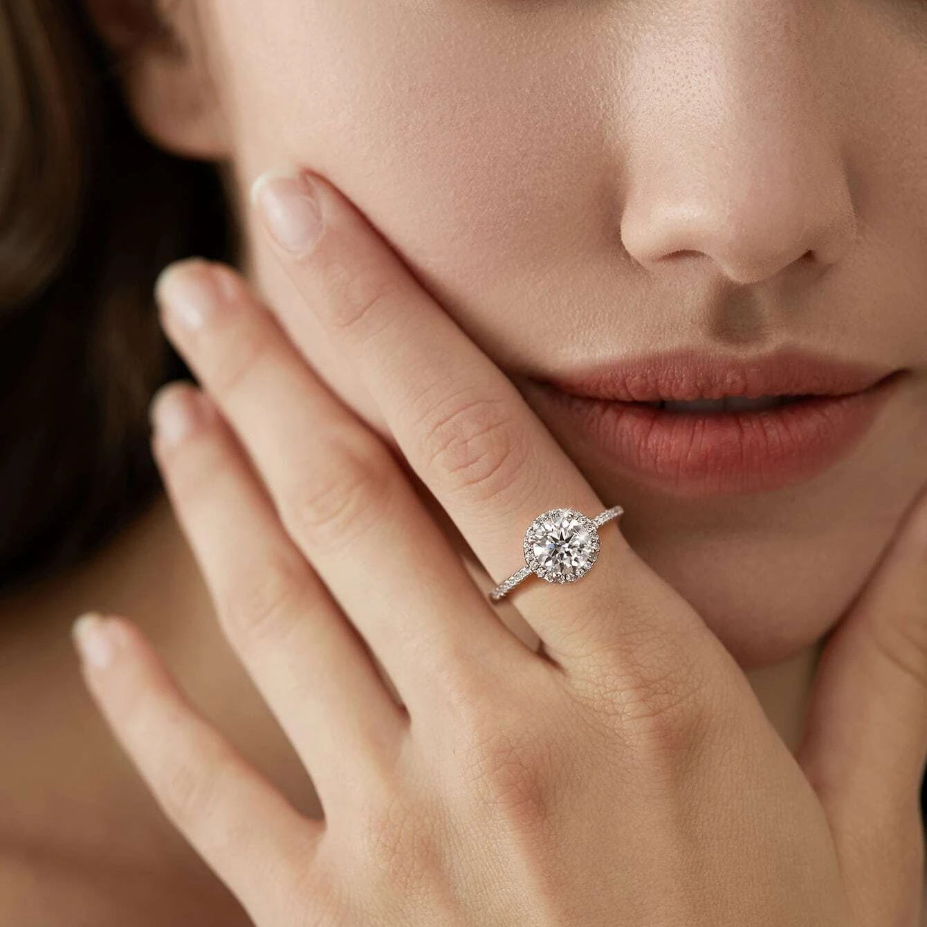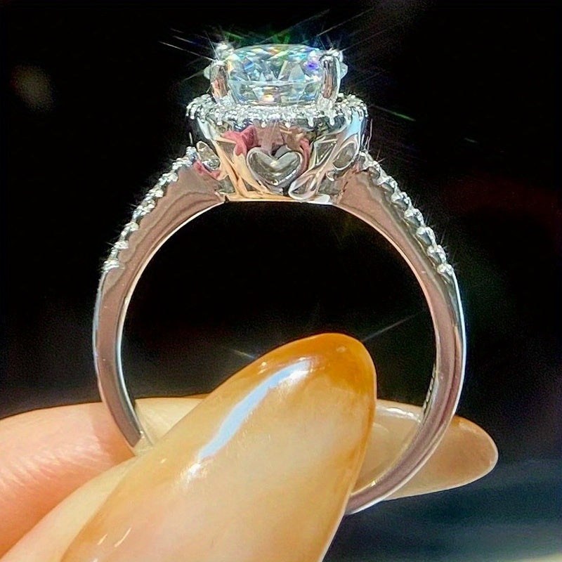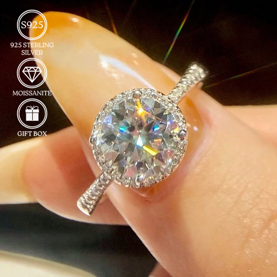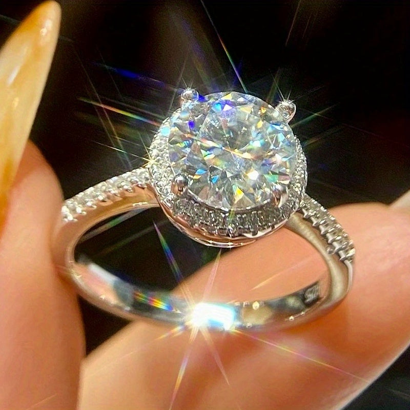 This stunning 2-carat round moissanite ring in S925 silver exudes opulence and elegance. A harmonious blend of sophisticated design and unassuming style, this ring is the ideal choice for any milestone occasion.