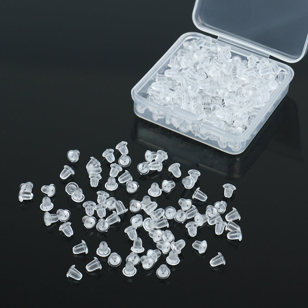 Keep your earrings secure with this pack of 200 soft transparent silicone earring backs. The diameter of each earring back is 5mm.