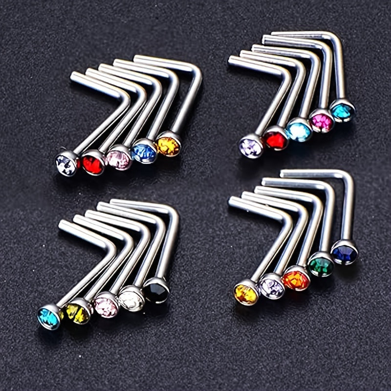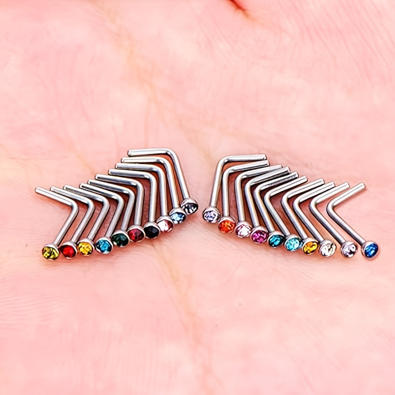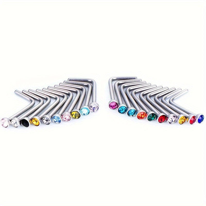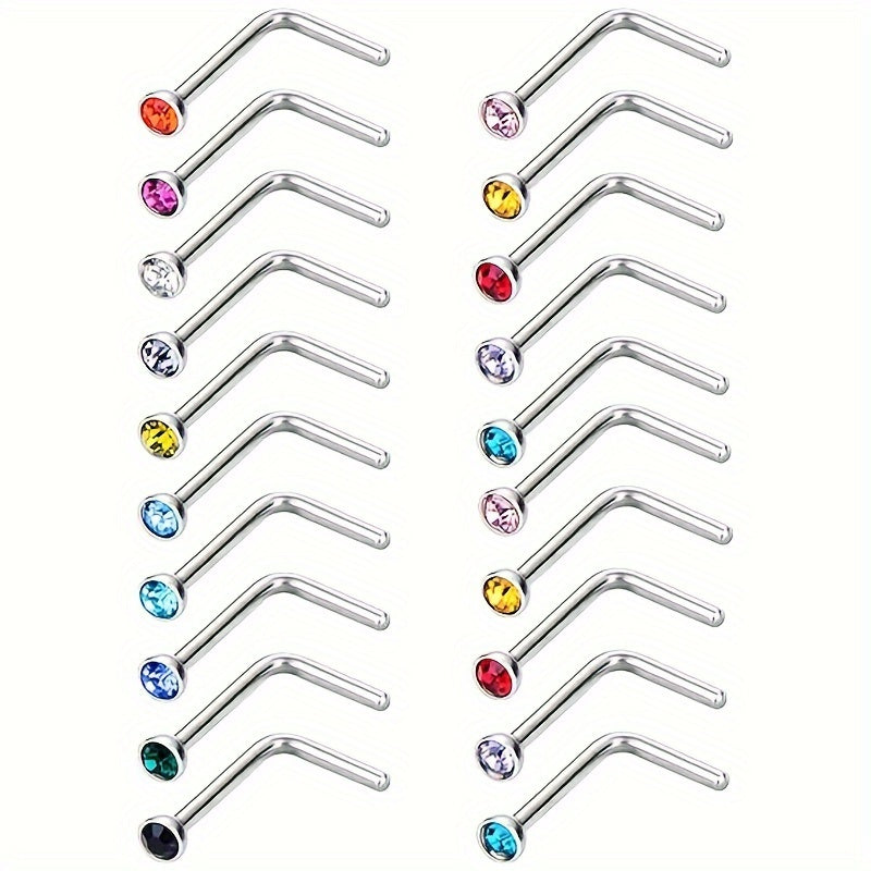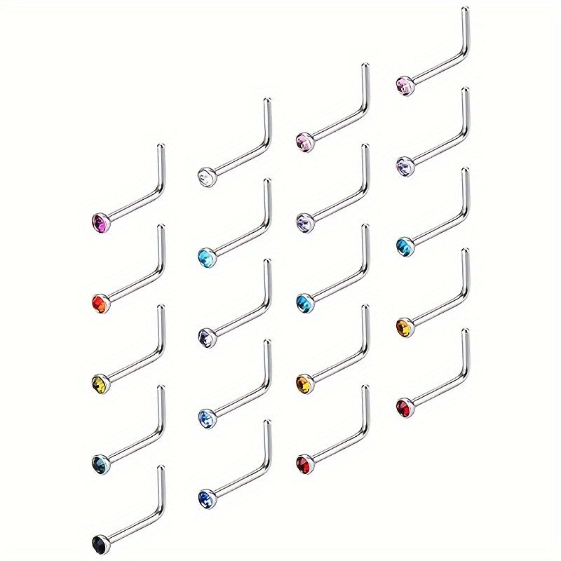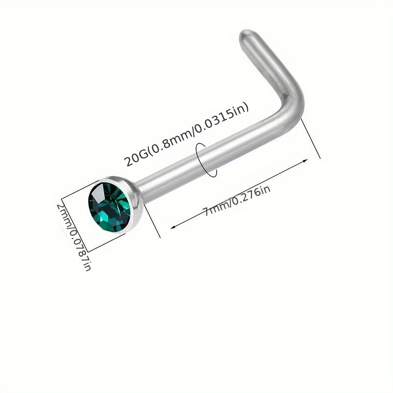 These nose studs are made of high-quality stainless steel and feature colorful gemstones. The L shaped design ensures a secure fit and comfortable wear. Perfect for men and unisex body piercings.