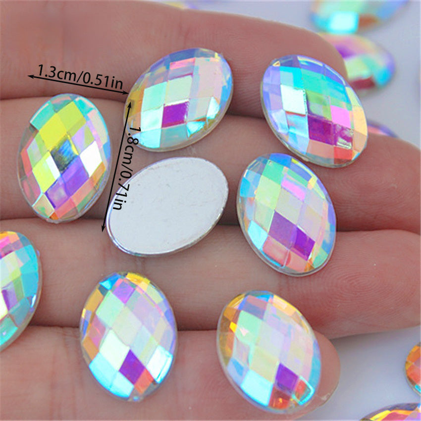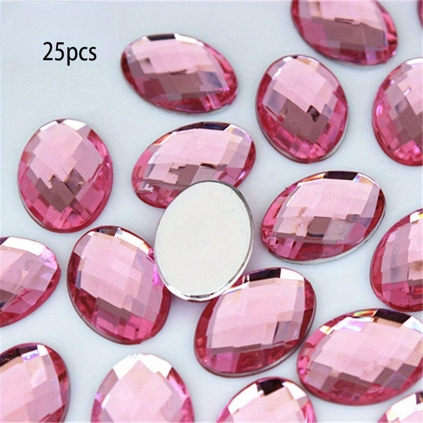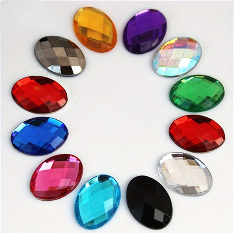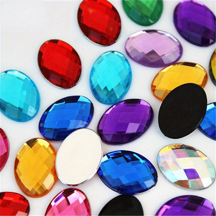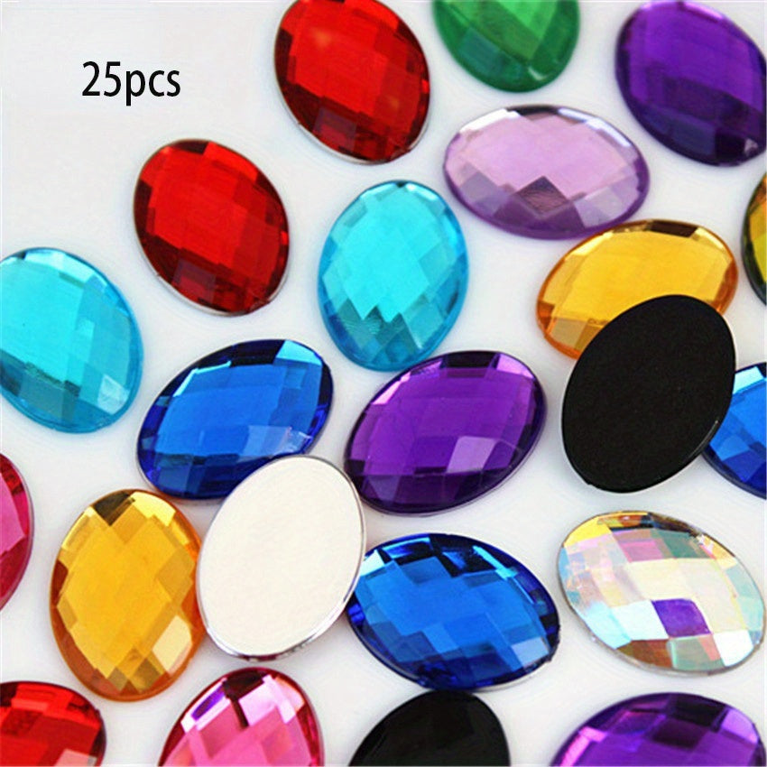 Add a touch of sparkle to your DIY jewelry projects with this set of 25 multicolor faceted oval flat back acrylic gemstones. Perfect for adding color and brilliance to your creations.