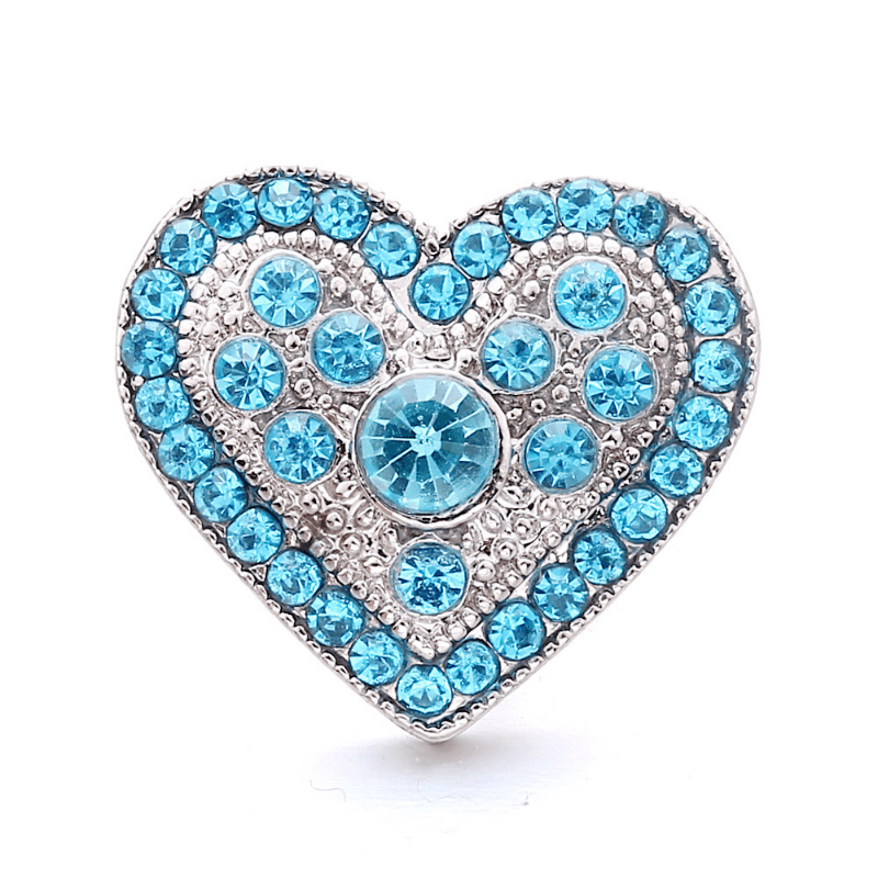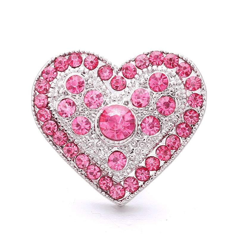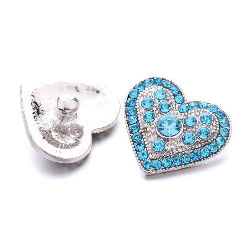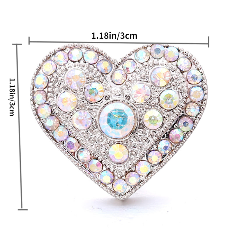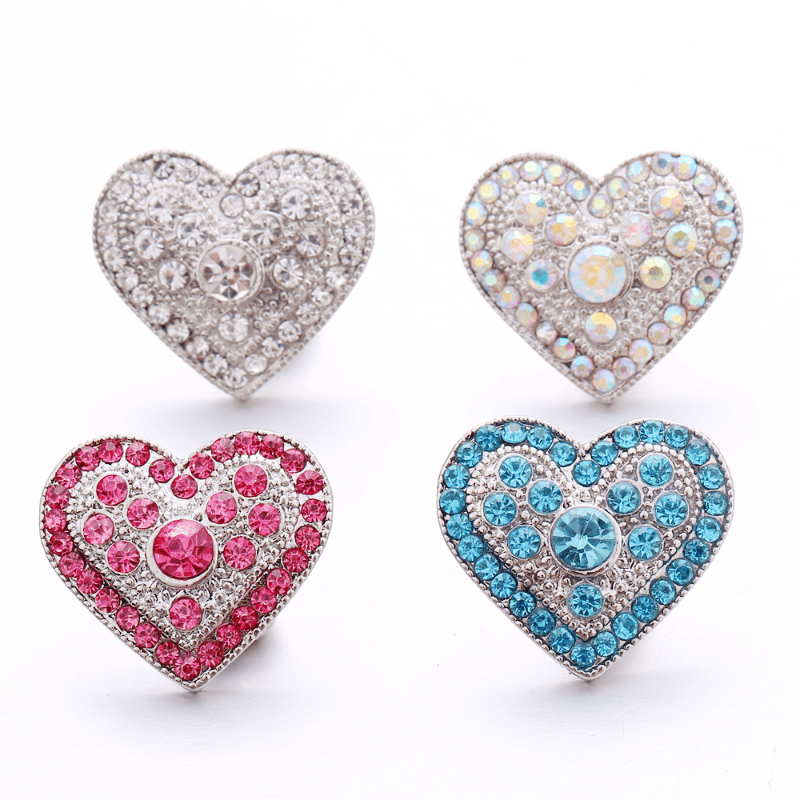 These alloy heart-shaped snap buttons are studded with colorful rhinestones, perfect for creating your own bracelets, necklaces, and accessories.