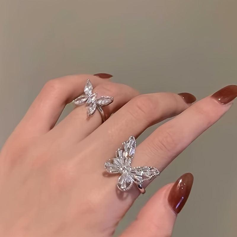 These 2pcs butterfly rings feature zirconia accents for a touch of elegance. The open and adjustable design allows for a comfortable fit on your index finger.