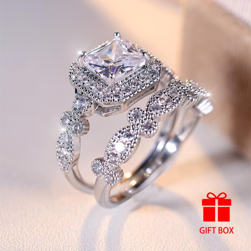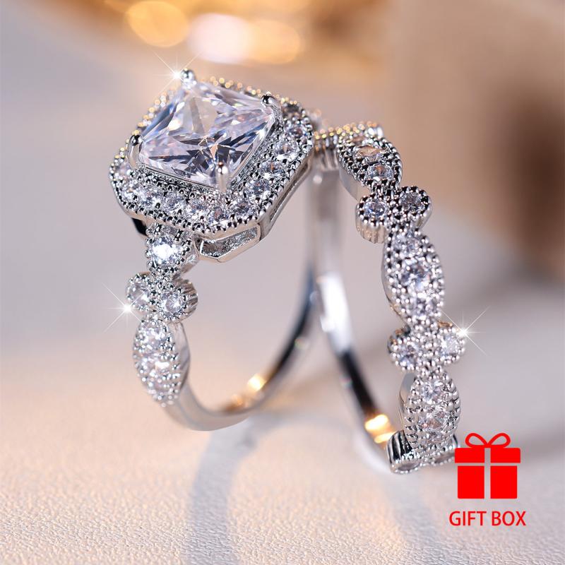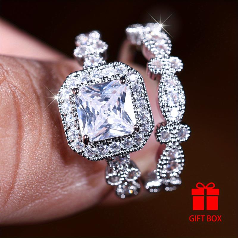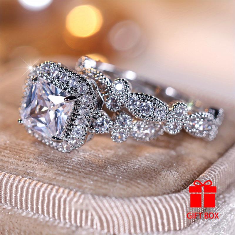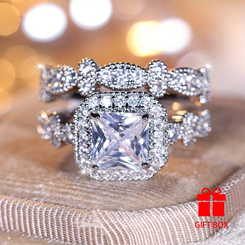 Elevate your look with this set of two square cubic zirconia rings that are durable, sparkly, and perfect for weddings, parties, or adding glamour to your everyday style.
