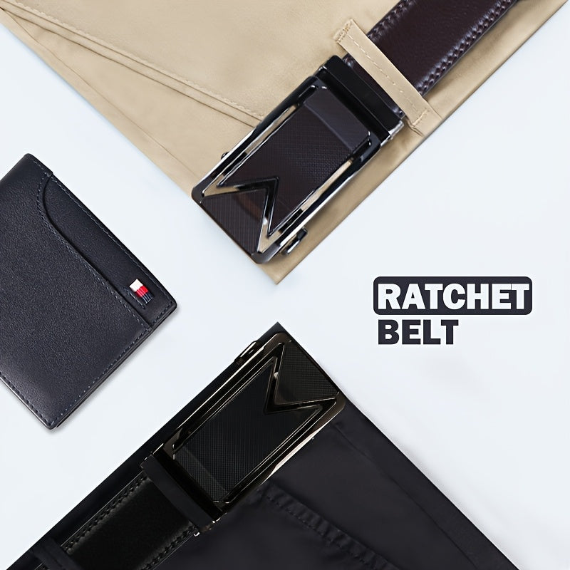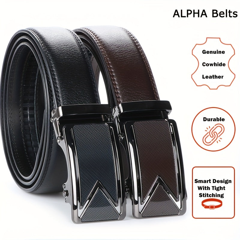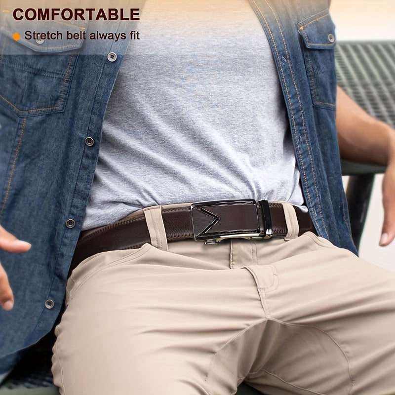 Add a touch of style to your attire with these men's leather belts. The 1 3 8 wide belts feature an automatic buckle and are perfect for dress pants and business attire.