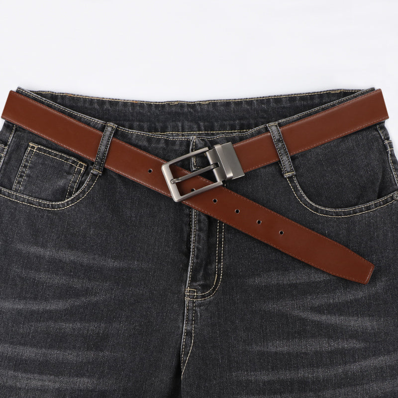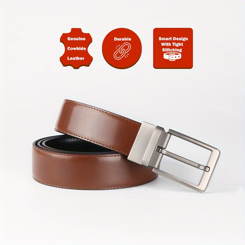 Upgrade your style with these versatile leather belts suitable for both casual and formal occasions. The rotating pin buckle adds a smart and modern touch.