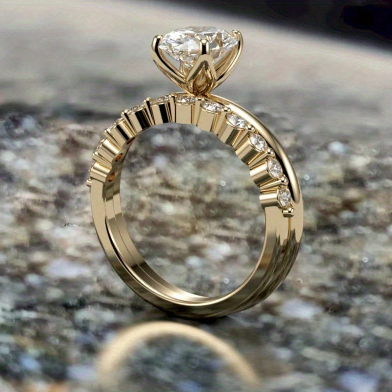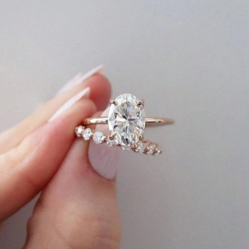 Elegant 2-piece ring set featuring oval shape design for weddings, engagements, and parties.
