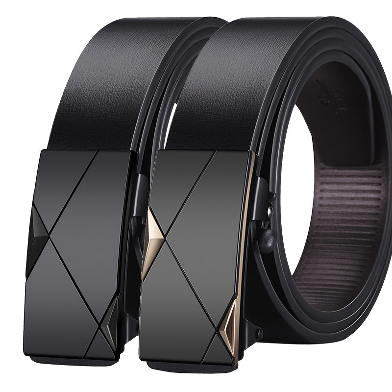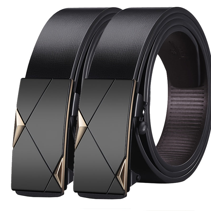 2pcs Paul Belt Men'S Faux Leather Belt with Automatic Buckle