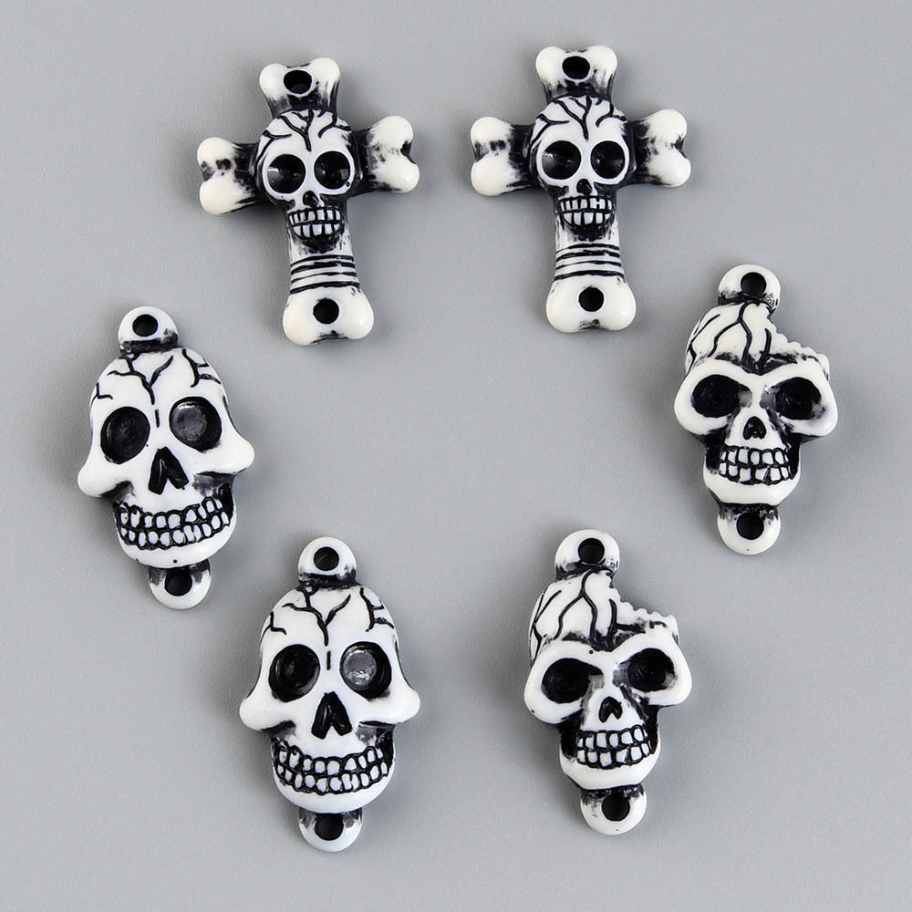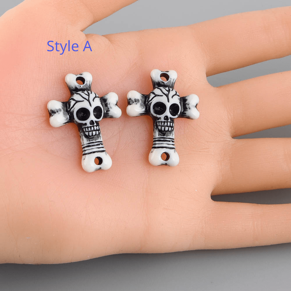 Add a touch of gothic style to your jewelry creations with these resin skull cross pendants. Perfect for necklaces, bracelets, and earrings.