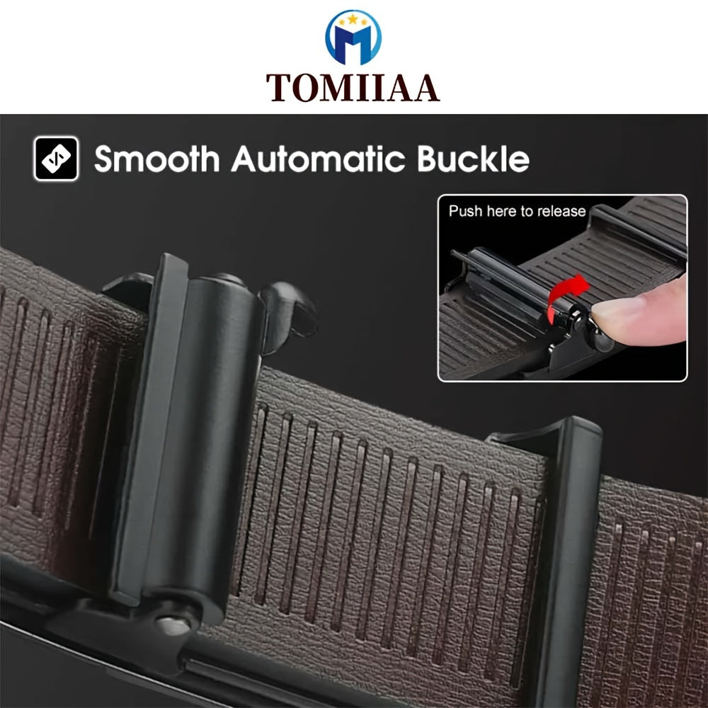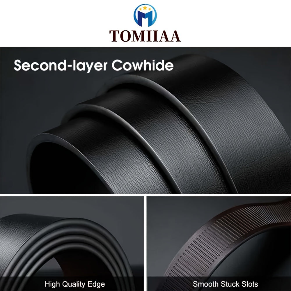 This set includes two cowhide belts with toothless alloy automatic buckles, perfect for business or casual wear.