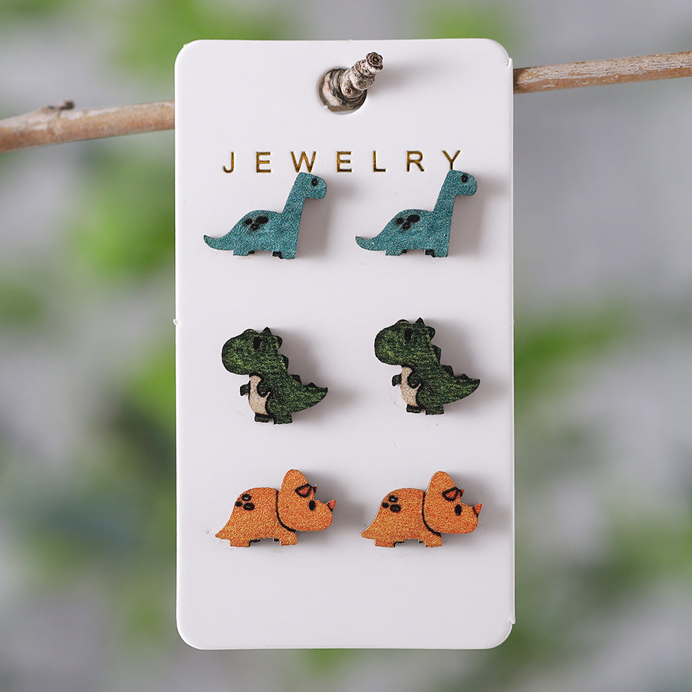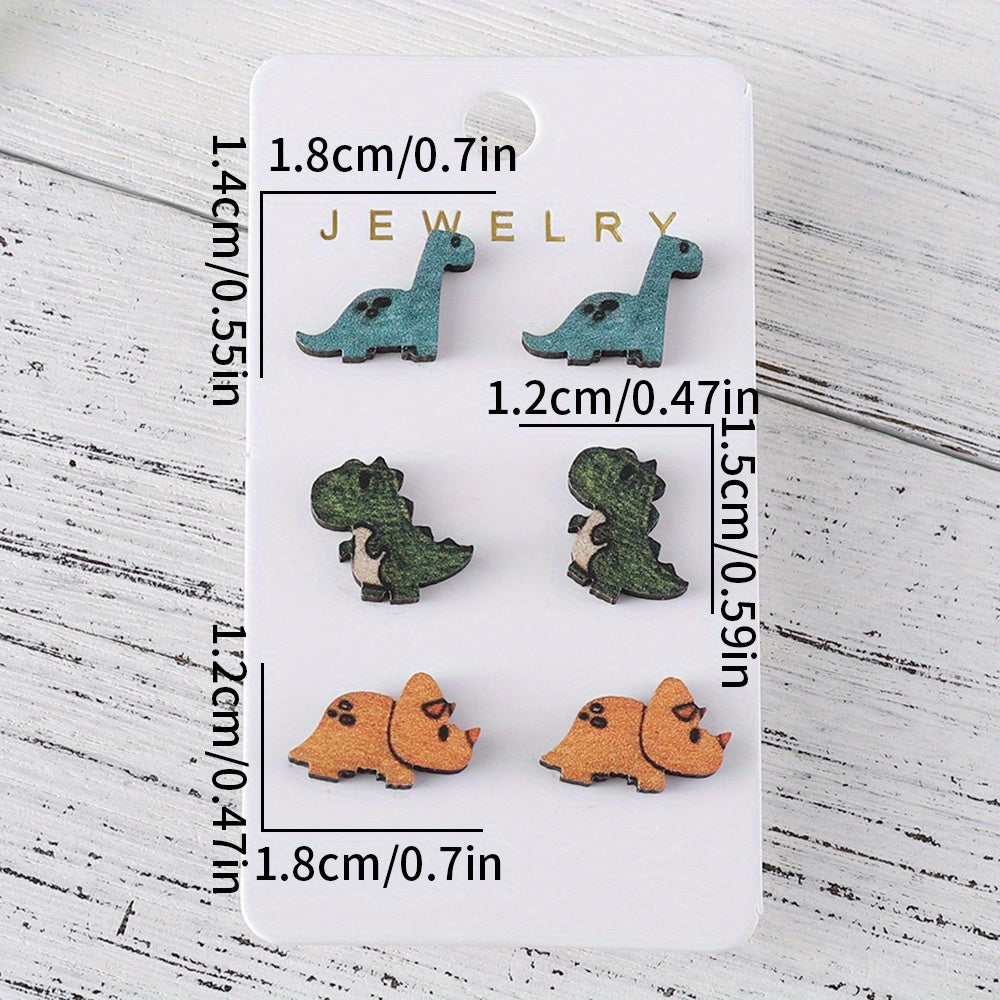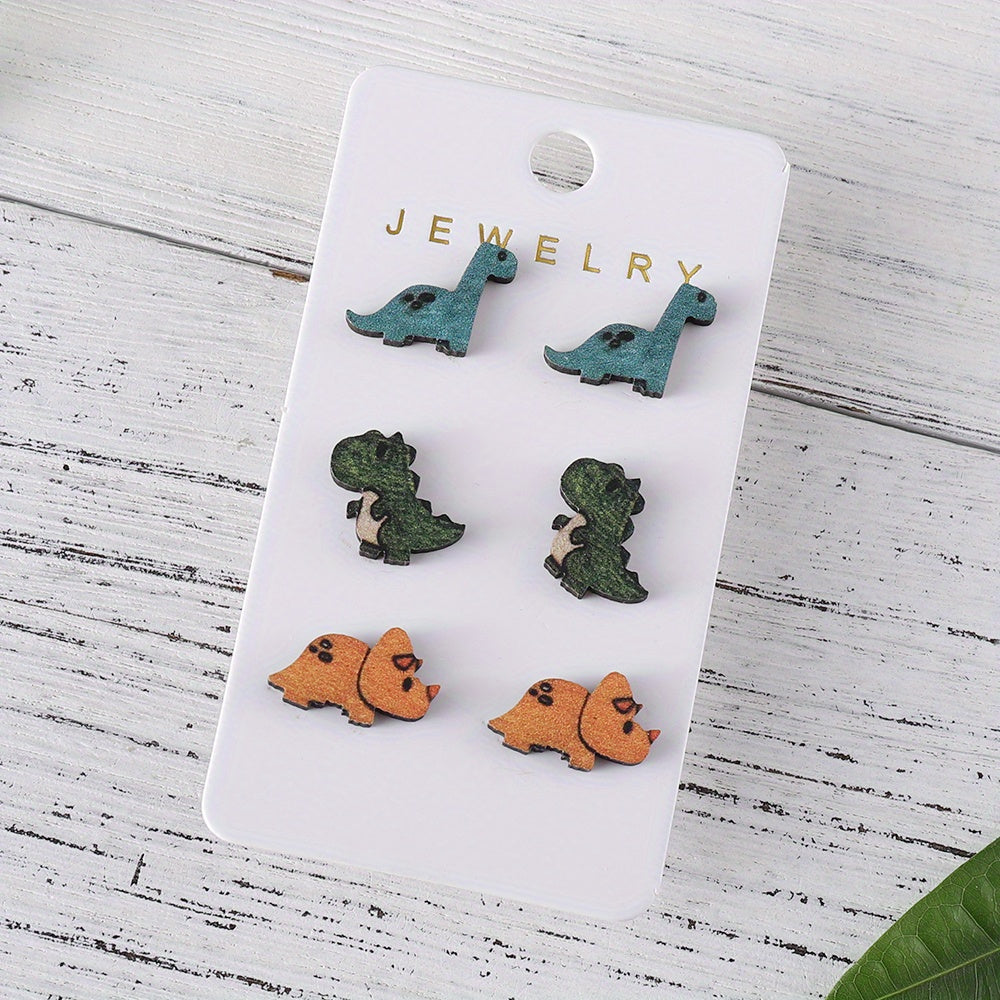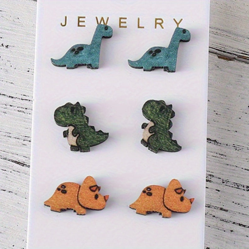 Get these unique wooden dinosaur pattern earrings in retro style. Perfect as a holiday gift for any dinosaur lover.