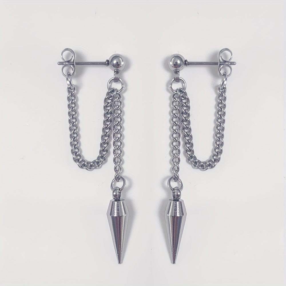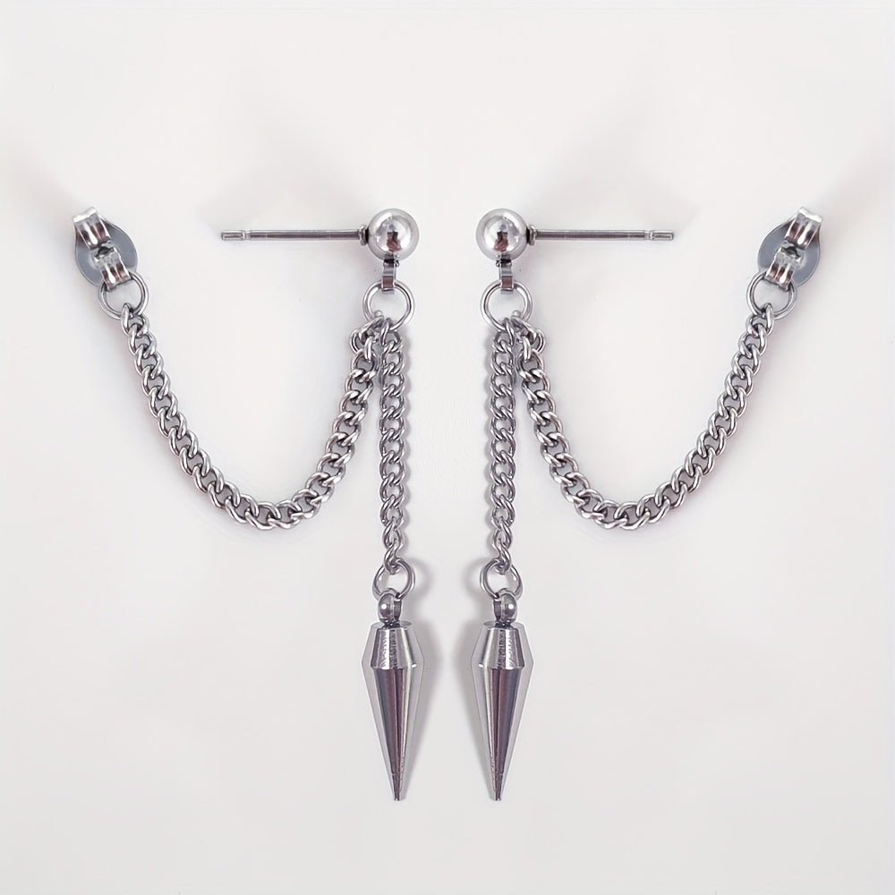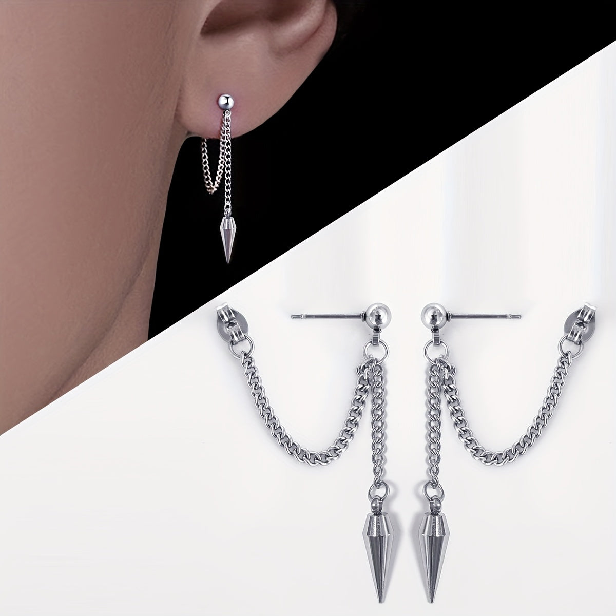 Hypoallergenic earrings featuring a pair of 304 stainless steel men's tapered pendant front and back punk stud earrings.
