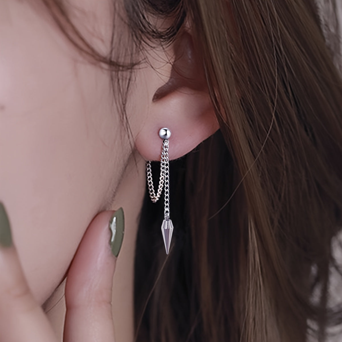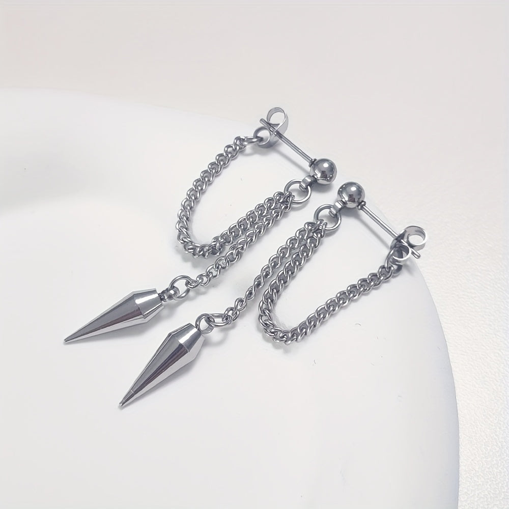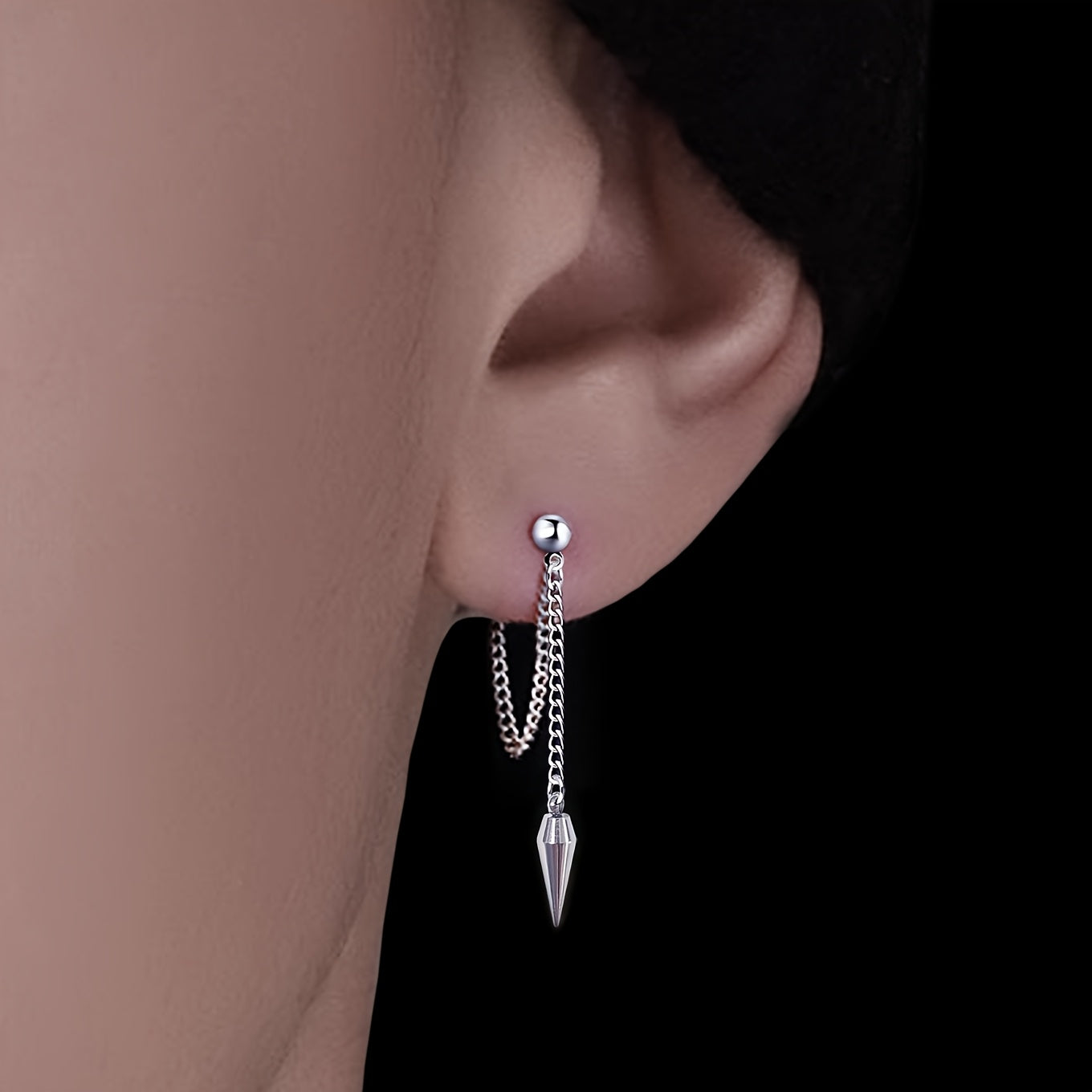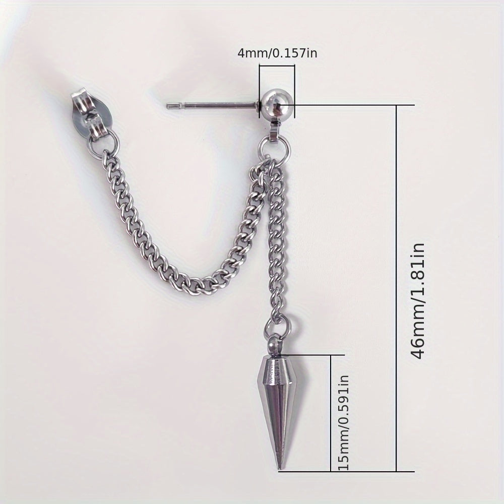 304 Stainless Steel Men's Tapered Pendant Front and Back Punk Stud Earrings