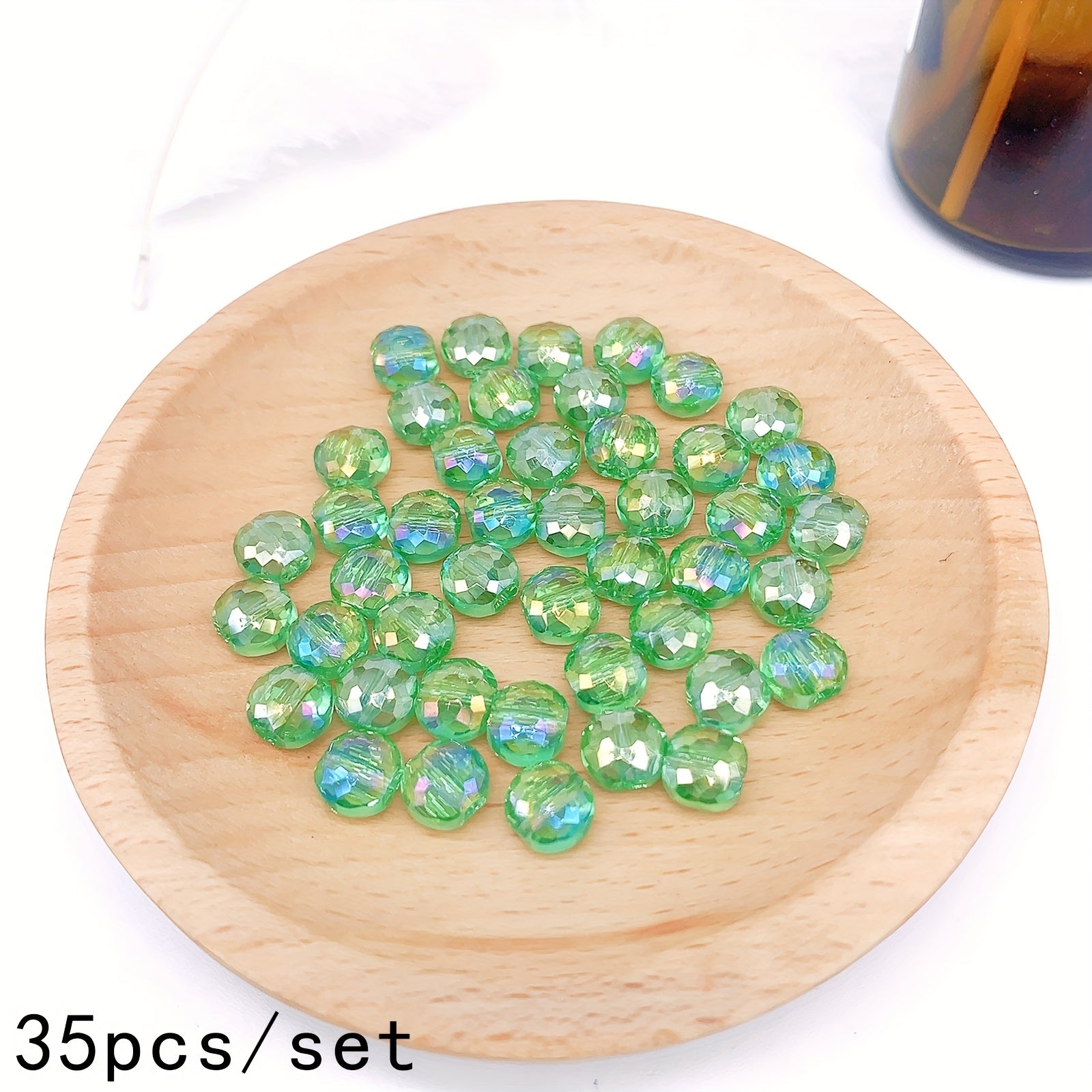 Get this 35-piece set of round cake-shaped green crystal beads to add sparkle to your DIY bracelet or jewelry projects. These beads are versatile and can be used for various jewelry designs.