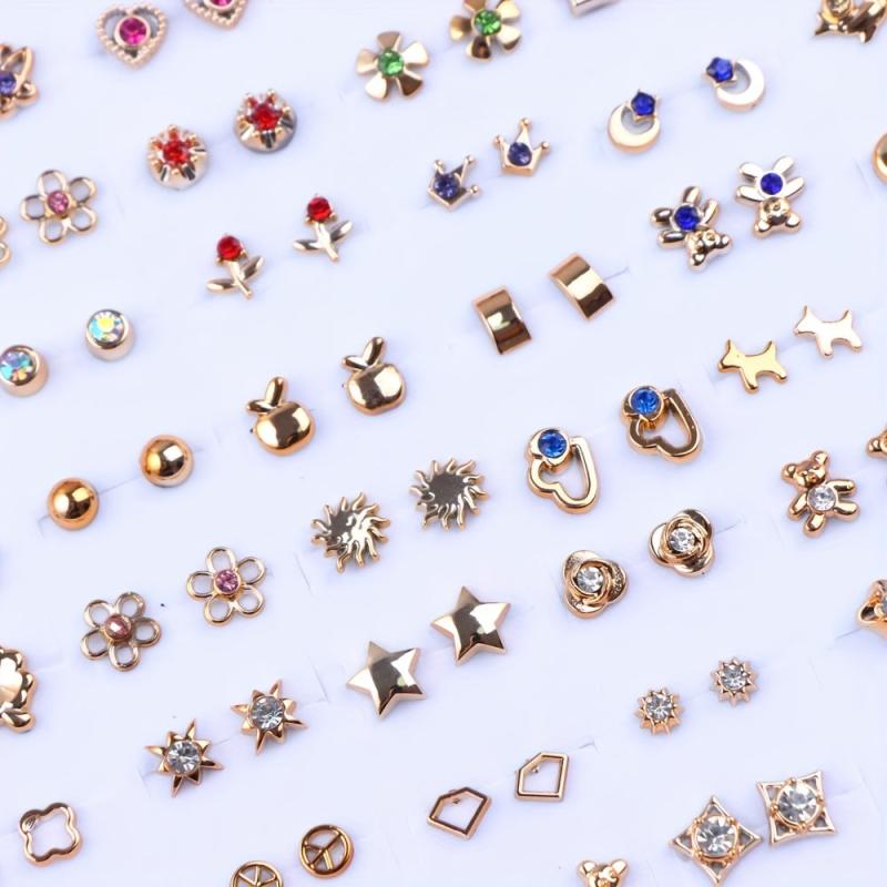 • 36 pairs pack of mini flower, heart, and geometric stud earrings