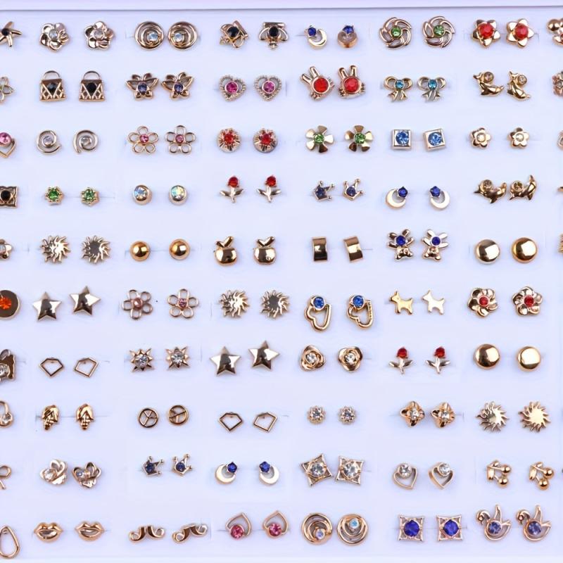 Elevate your style with this 36 pairs pack of small stud earrings featuring rhinestone geometric designs. Perfect for parties or as a gift for a loved one.
