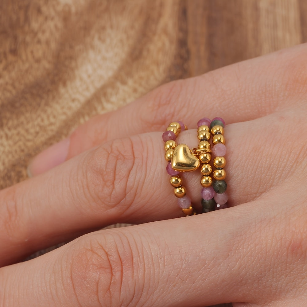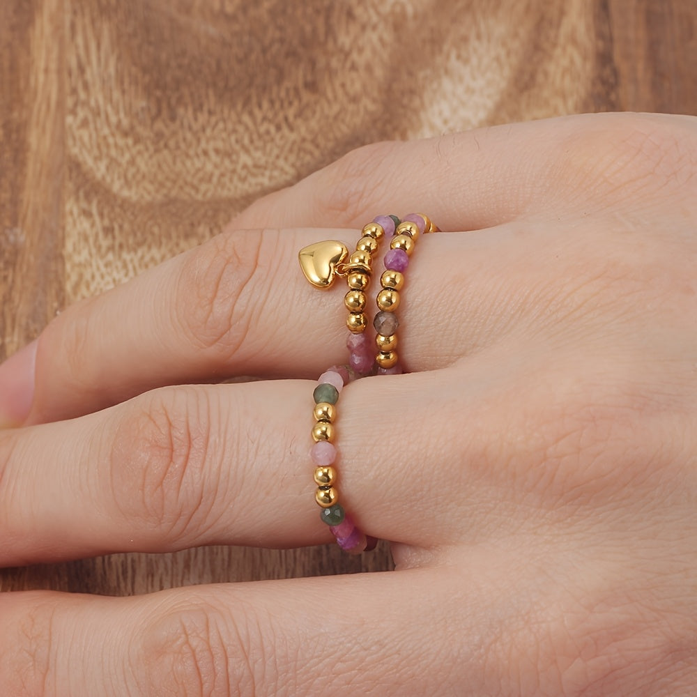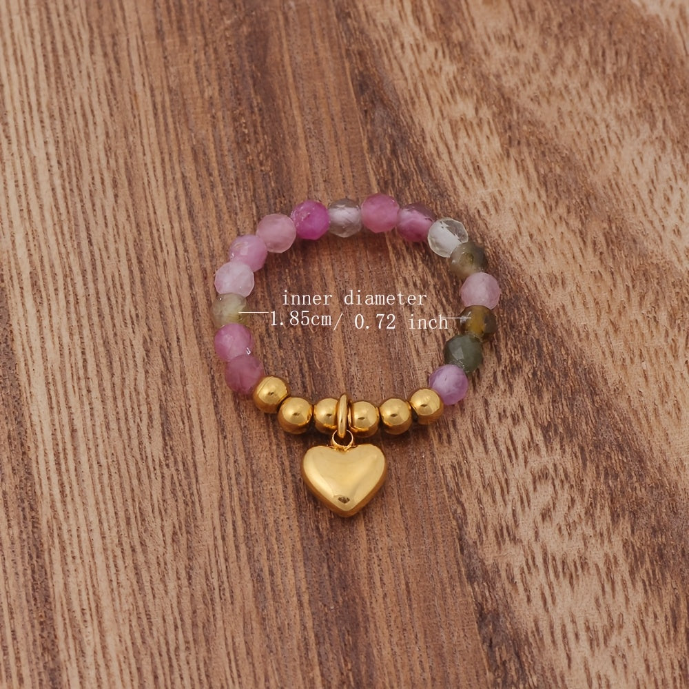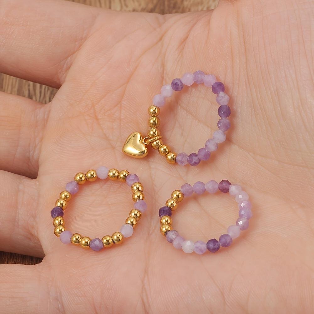 This set includes 3 colorful beaded stretch rings with heart charm pendants. Perfect for moms, wives, daughters, or as a gift for Mother's Day.