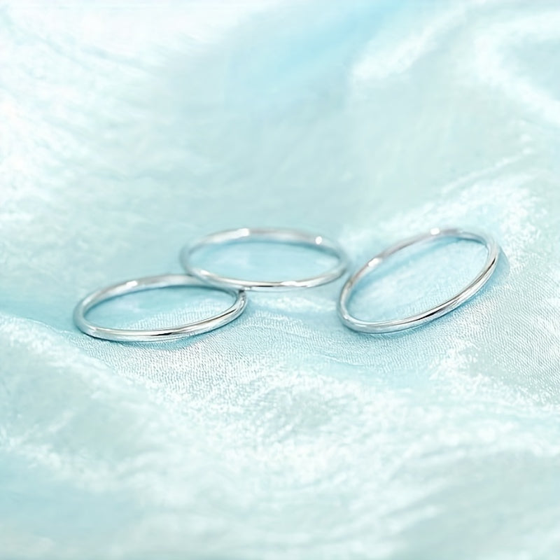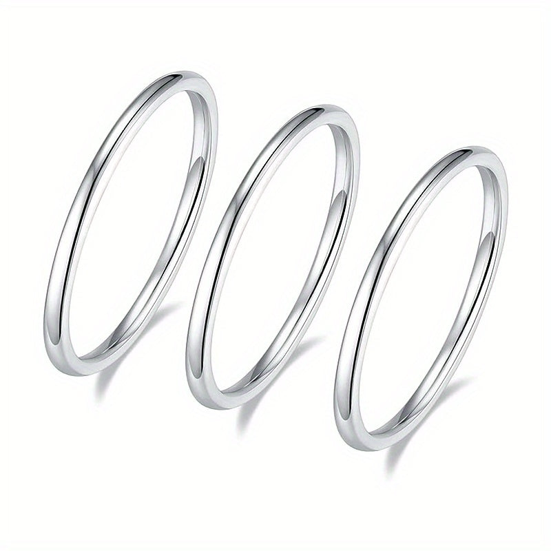This set includes 3 minimalist band rings made of stainless steel with a silver plated finish. Perfect for men and women to wear as stackable jewelry and match with daily outfits.