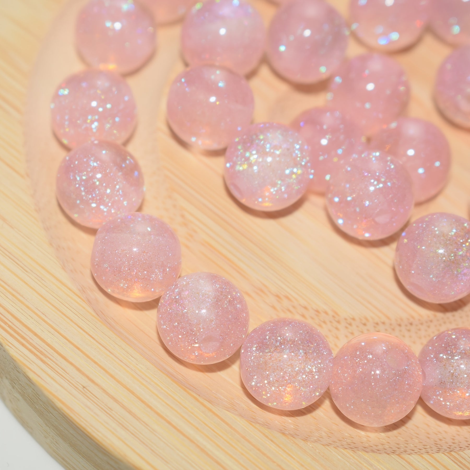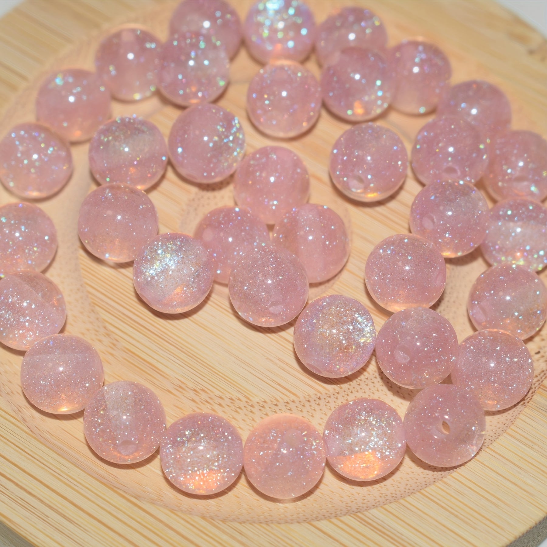 Add a touch of sparkle to your creations with these pink glittery resin beads. Perfect for making bracelets and jewelry, these beads have a shimmering iridescent finish that will catch everyone's eye. Makes an ideal gift for mothers and students on campus.
