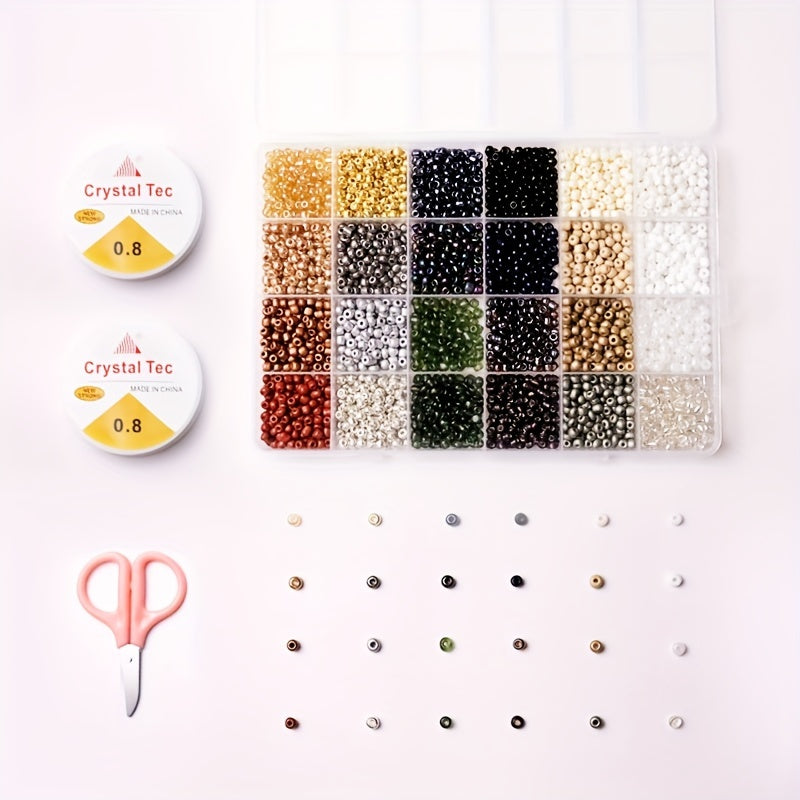 This bead kit includes 4800 dark glass rice beads in 24 colors, perfect for creating necklaces, rings, bracelets, anklets, and earrings. Ideal for craft and DIY projects.
