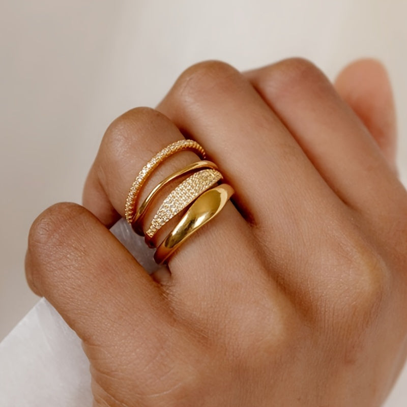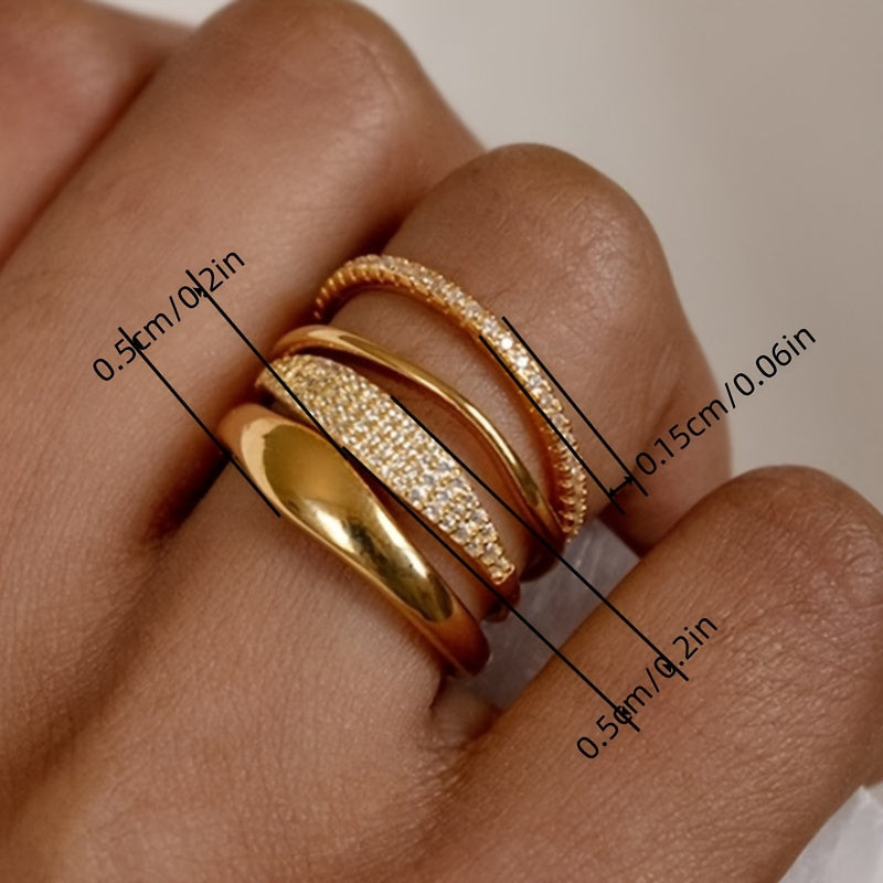 4pcs Women's CZ Stackable Rings Golden Tone Daily & Party Accessory