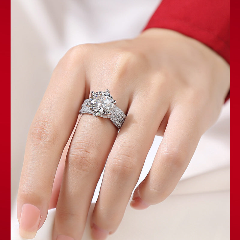 Make a statement with this stunning 5 carat moissanite ring, perfect for engagements, weddings, and anniversaries. It's a great gift for your boyfriend or girlfriend to celebrate your special moments together.
