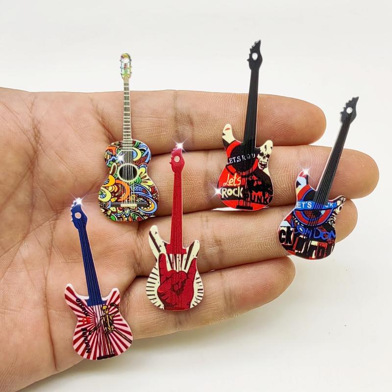 5 Pack Mixed Guitar Violin Ukulele Acrylic Pendants for DIY Jewelry Making